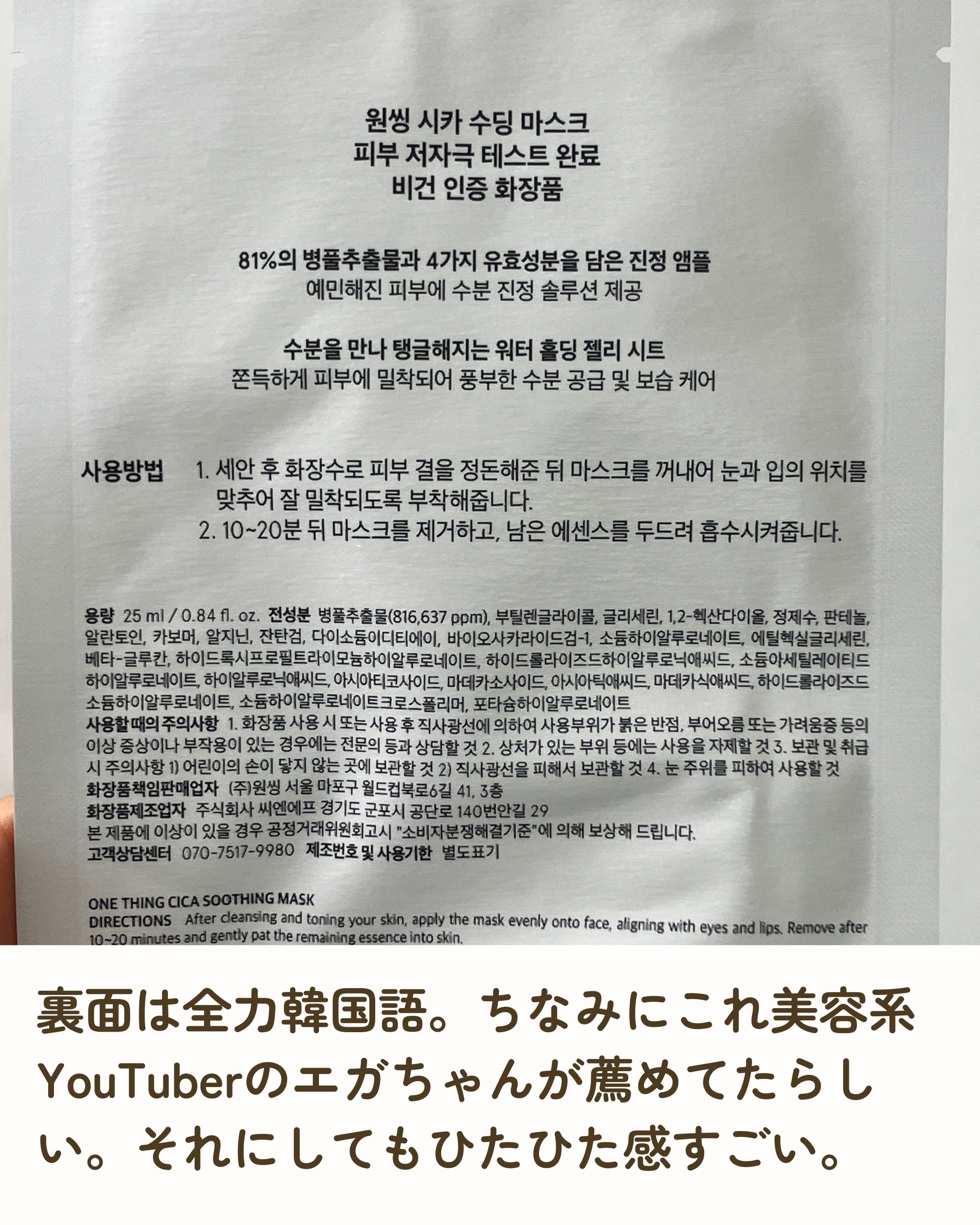 商品詳細情報ONE THING CICAスージングマスク