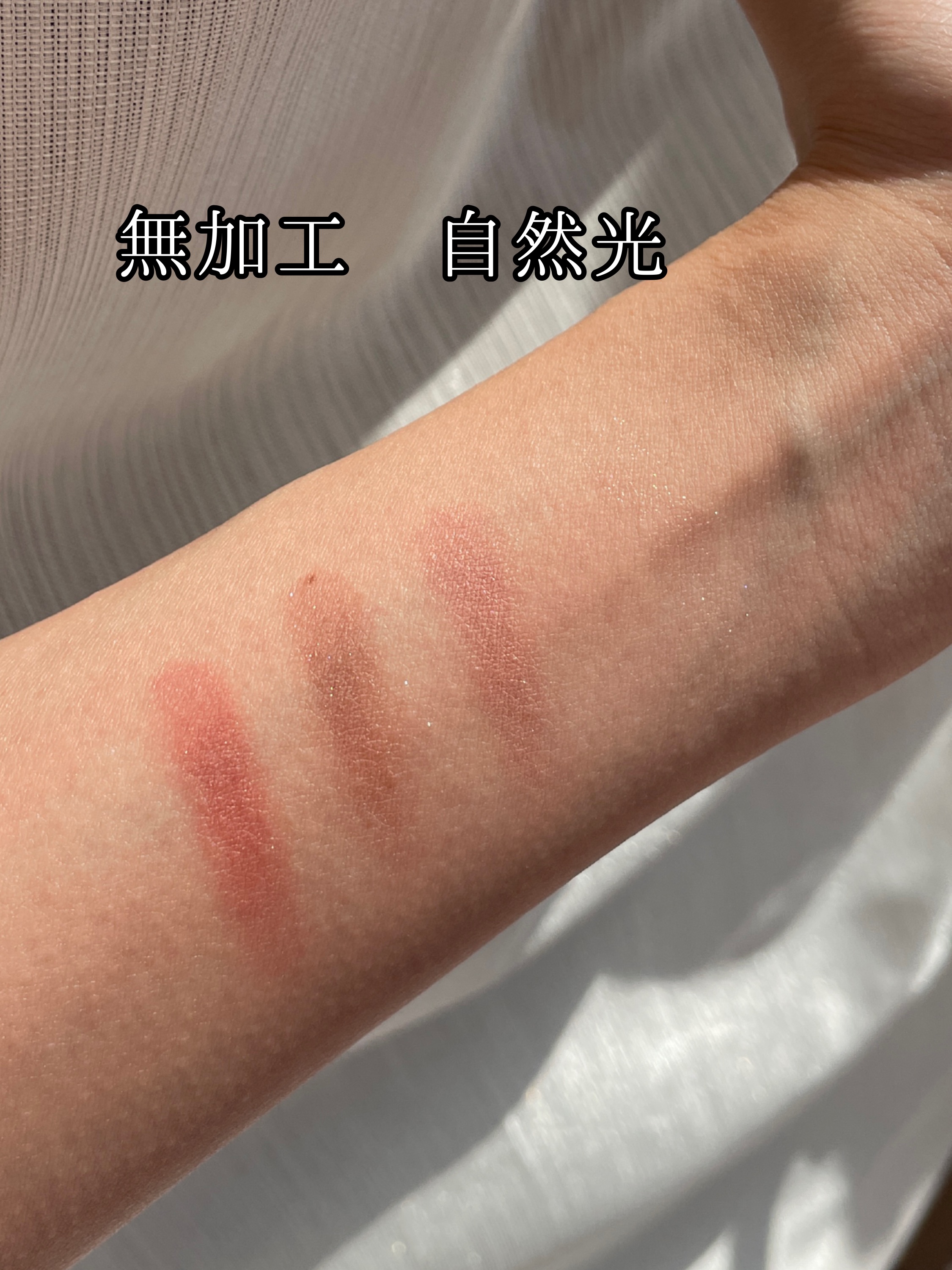 オレンジベージュ系のリップで、とにかく色味が超可愛い!;; リップ自体はツヤでもマットでもない中間ですが、色味的に少しマットっぽく見えました🤔☁️ ナチュラルな仕上がりなので、他を濃くして唇を引き算したい時や、ナチュラルメイクに使えそうです! 落ちやすくマスクに付きやすいことと、塗った後唇のシワが少し目立つので、こまめな塗り直しとリップケアが必要だと思います。