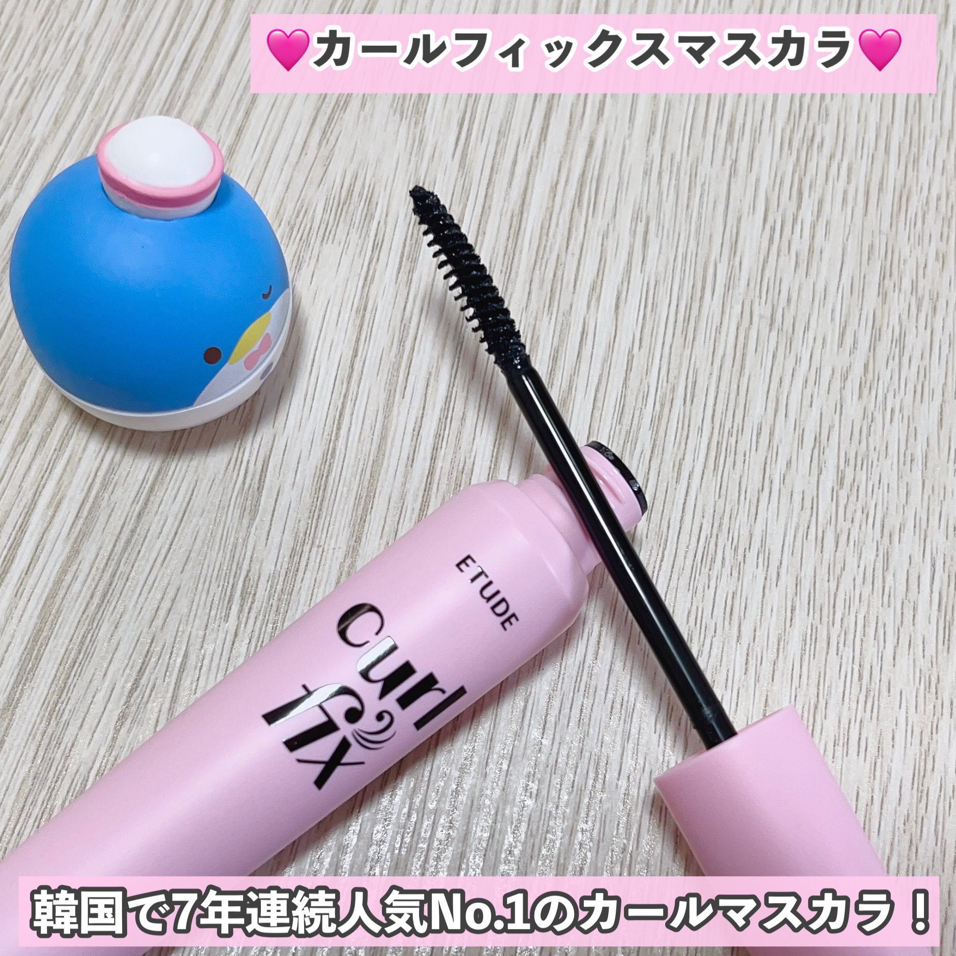 ETUDEカールフィックスマスカラボリュームブラックエチュードの人気マスカラの束感+ボリュームに特化したタイプ!繊維はなしで、塗り重ねてもダマになりにくく、束感とボリューム感が簡単に出せる😳ブラシはゆるやかなカーブで、先端は細くなってるから上...