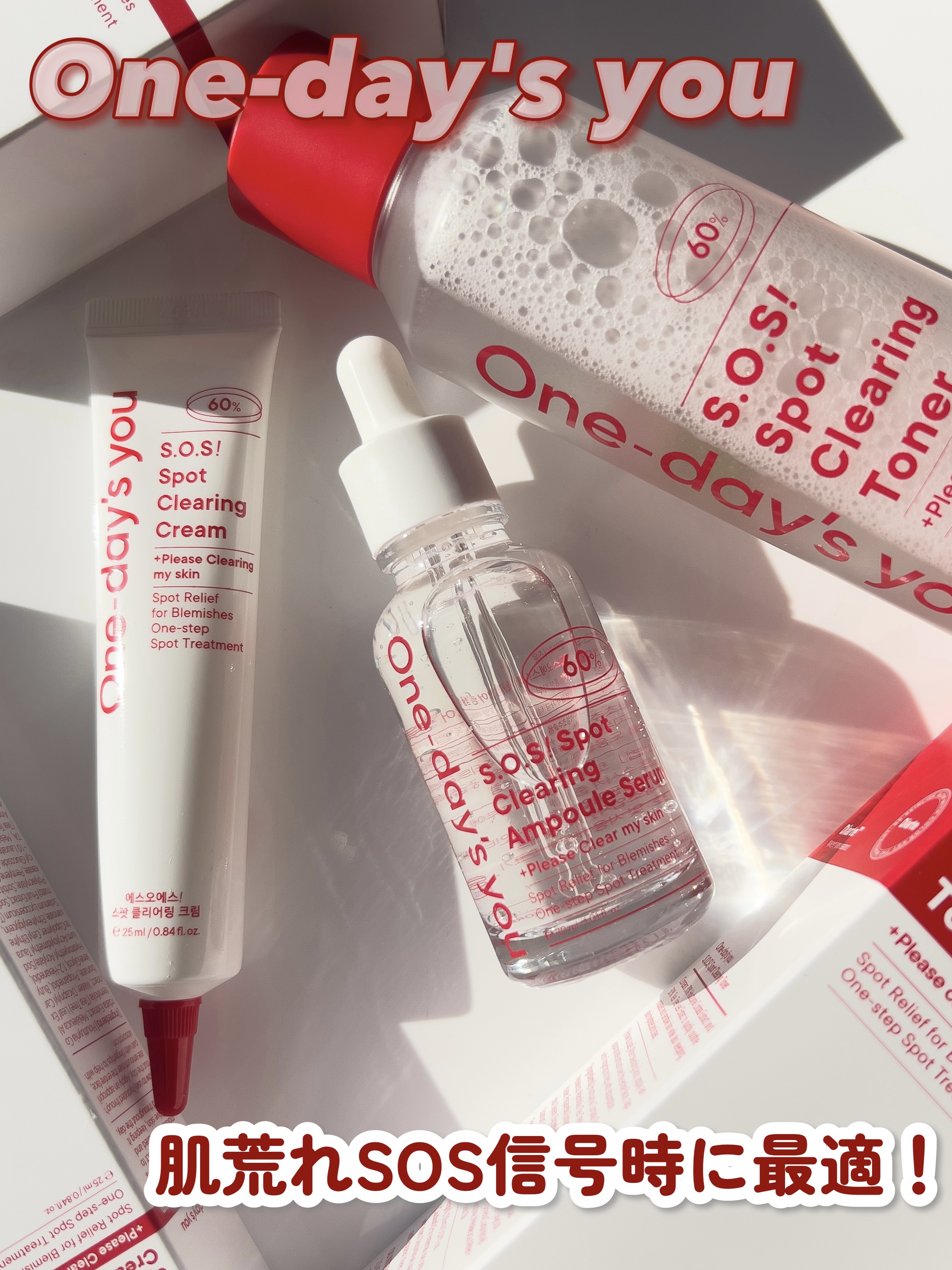 #PR【One-day'syou】S.O.S!SpotClearingToner150mlサラっとしたテクスチャーで肌にぐんぐん吸収されます角質や皮脂を綺麗に抑えて、鎮静ケア成分が肌を癒してくれるので、刺激が低いのに肌を健康に導いてくれると思...