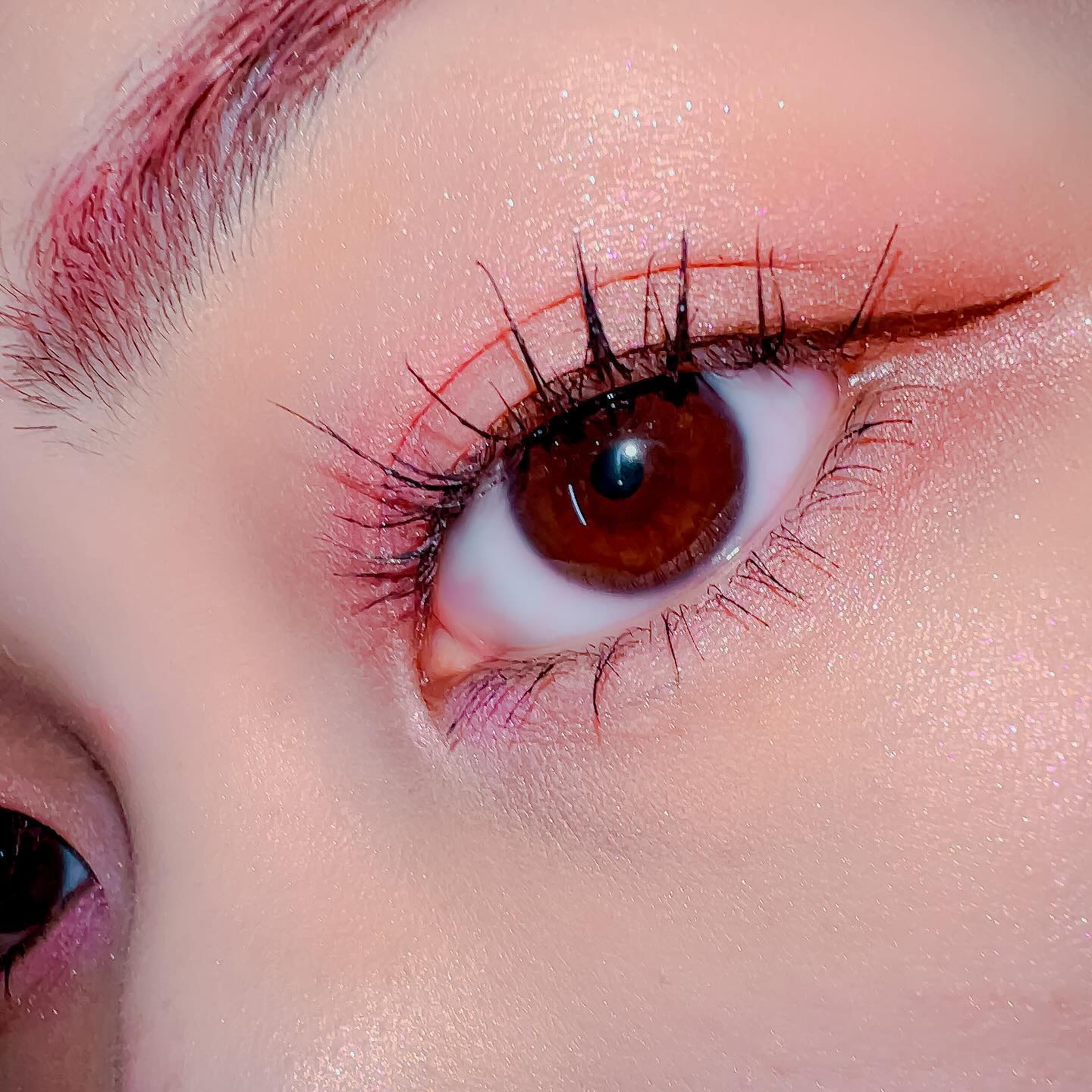 ピンクにグレージュも良いですね👌💗 今日は可愛らしい感じにしてみました💕 上下瞼黒目〜目頭側にラメを塗ってキラキラさせております🤩 目尻はマットのピンクを濃いめに重ねて💗 グレージュのアイライナーと相性◎