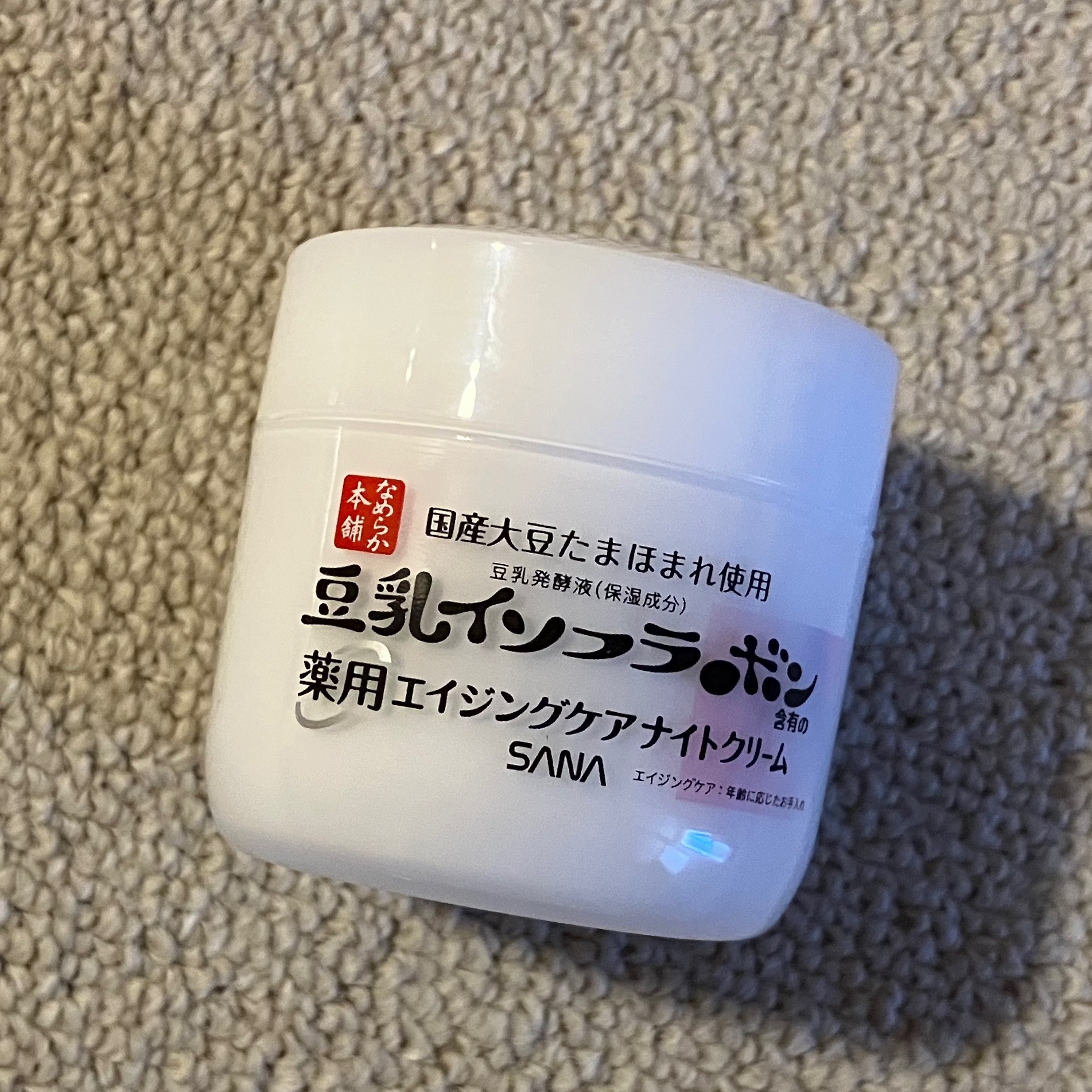 - <50g> ナイアシンアミド、水、BG、スクワラン、濃グリセリン、トリ2-エチルヘキサン酸グリセリル、バチルアルコール、硬化油、自己乳化型モノステアリン酸グリセリル、ステアリン酸、ジペンタエリトリット脂肪酸エステル(2)、メチルポリシロキサン、豆乳発酵液、レチノール油液、N-ステアロイルジヒドロスフィンゴシン、プルラン、エタノール、カルボキシビニルポリマー、グリコシルトレハロース・水添デンプン分解物混合溶液、ダイズエキス、パルミチン酸セチル、ヒドロキシエチルセルロース、フィトステロール、ベヘニルアルコール、水酸化K、水酸化Na、水素添加大豆リン脂質、フェノキシエタノール