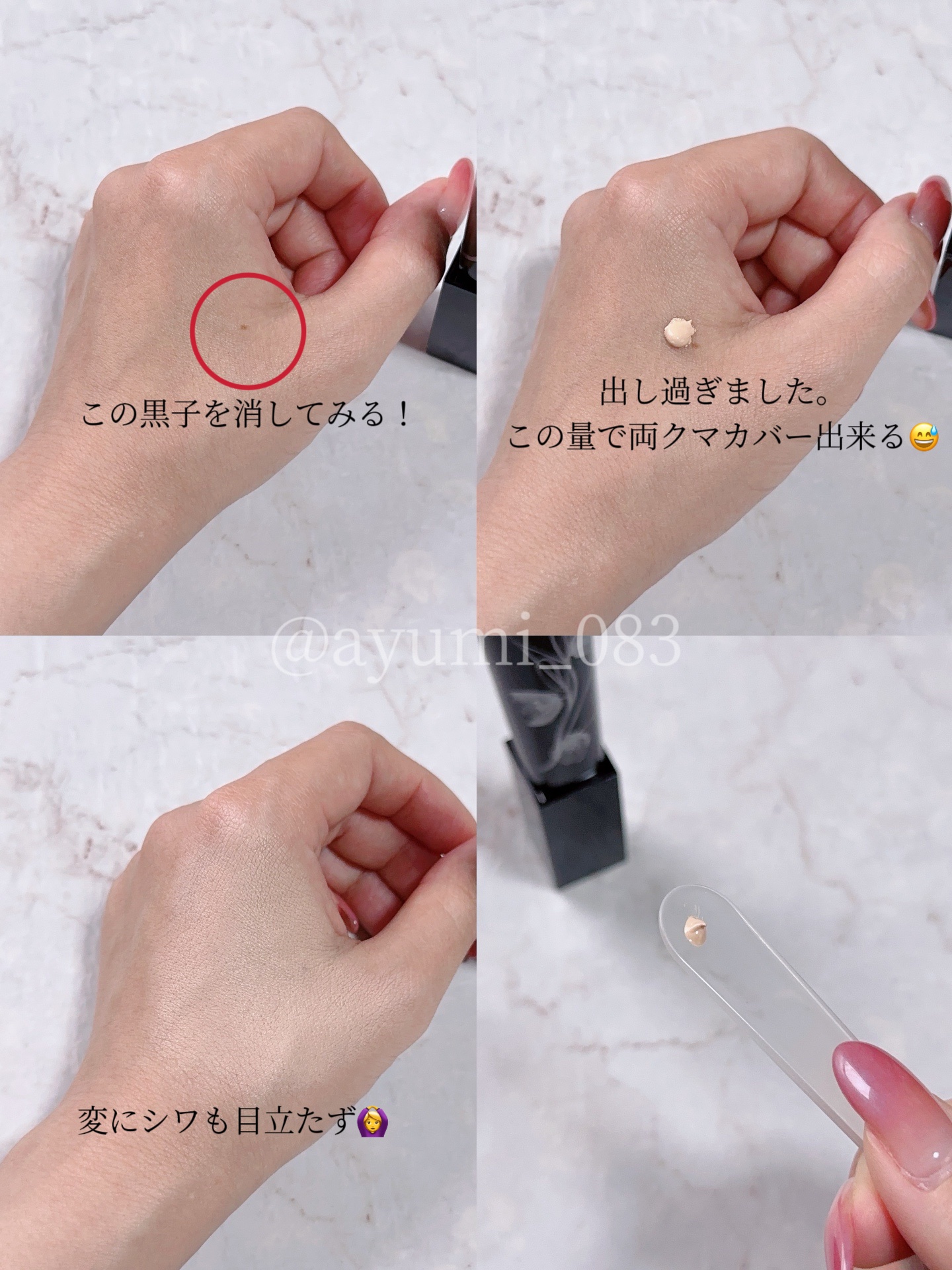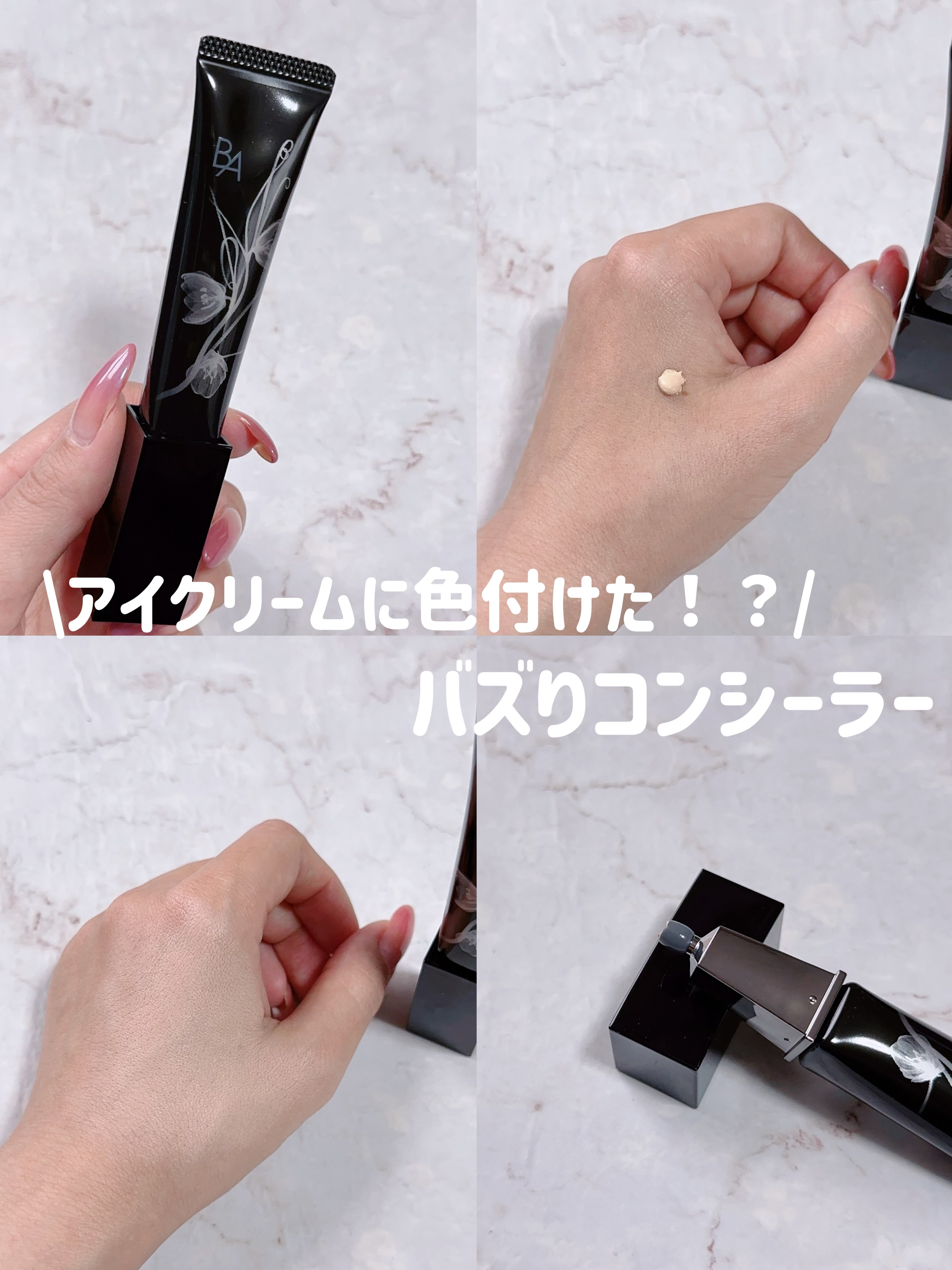 光で影を飛ばす、ハリ仕上がり 色むら、気になるくぼみやたるみなどの形状による影までカバーする、B.Aのアイゾーン研究から誕生した目元ケアしながら使えるコンシーラー 密着感のあるつけ心地でツヤ*っとした仕上がりに。 厚塗り感も気にならない使い心地 B.A スキンケアの B.A アイゾーンクリームと共通の美容成分が配合されているそうで使いながら目もとをケアできるのも嬉しい。