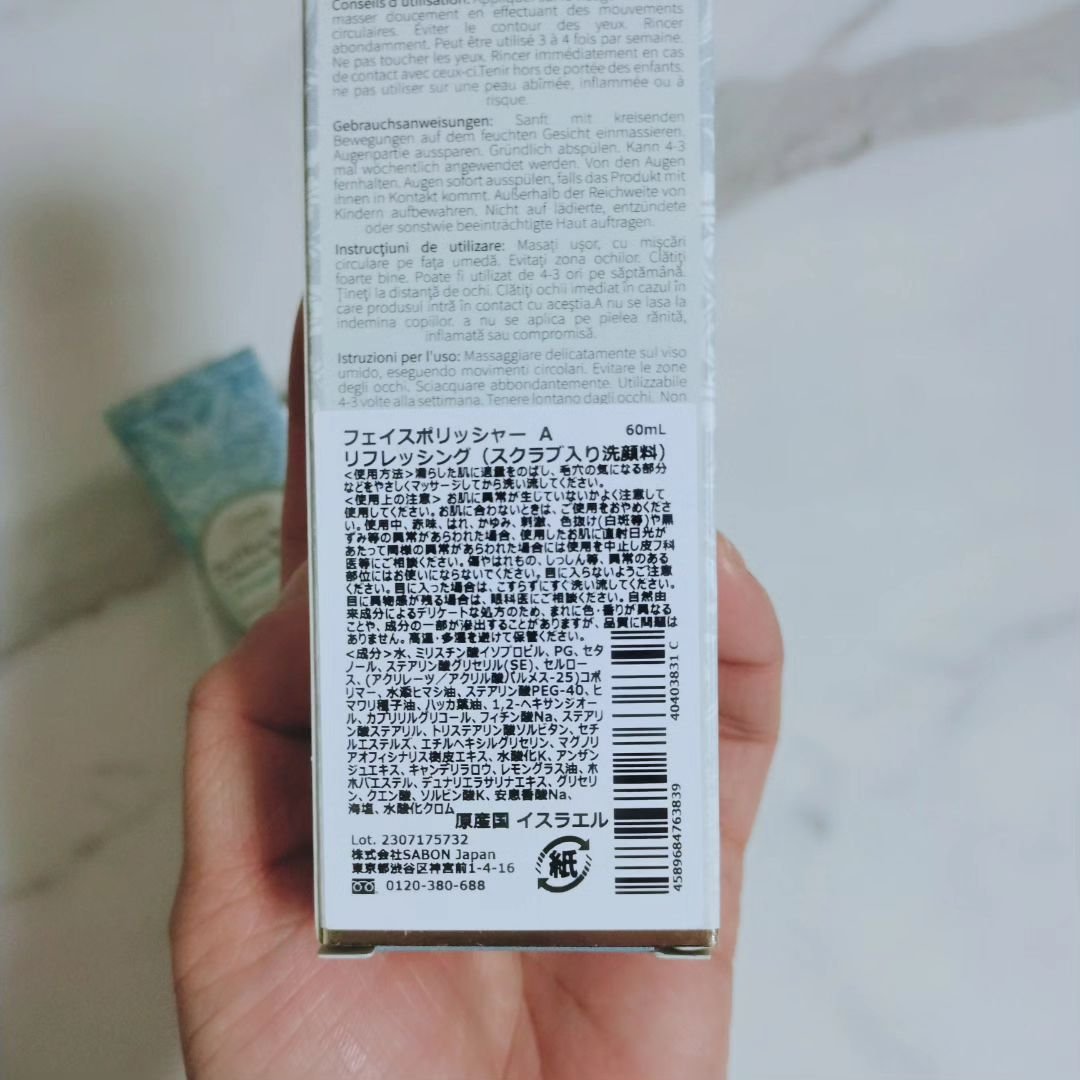 SABONフェイスポリッシャーリフレッシングミントミントはかなりスースーした使い心地で歯磨き粉感が強かったですスクラブなので目の周りは避けてますが目にもスースー感じました細かいスクラブがたくさん入ってるのかなと思ってたのですが結構大きめでジャ...