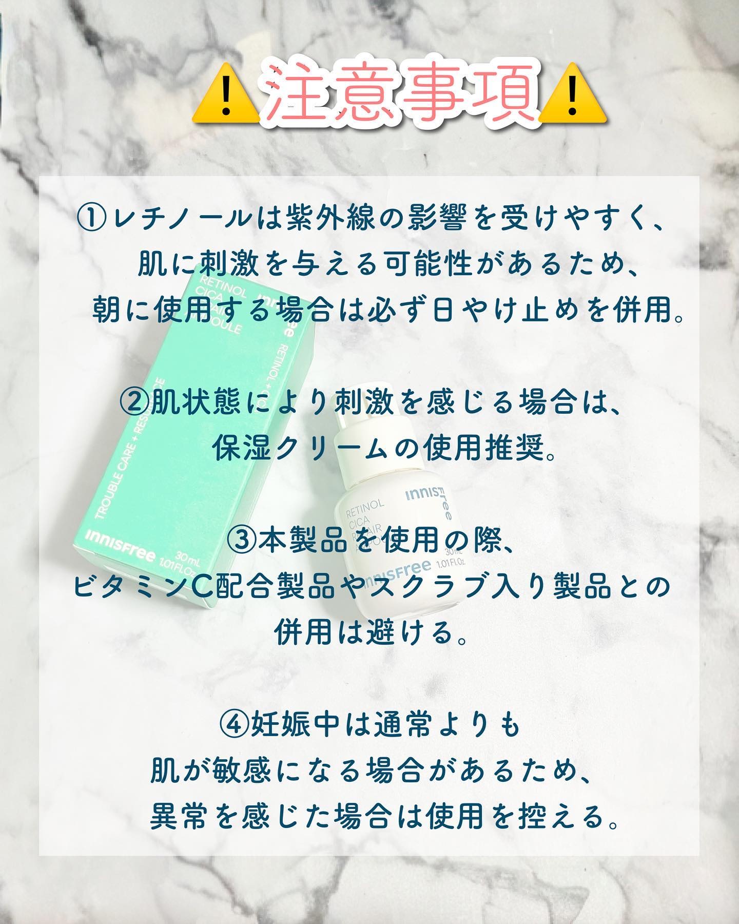 イニスフリーのレチノール良いよね‼️ 年末の大掃除で見つけてしまった古いパケのセラム。 個人的にはヒリヒリしなくて取り入れやすい。 1回に2プッシュ使ってる😄 使い切ったら新しいパケのも買おうかな!