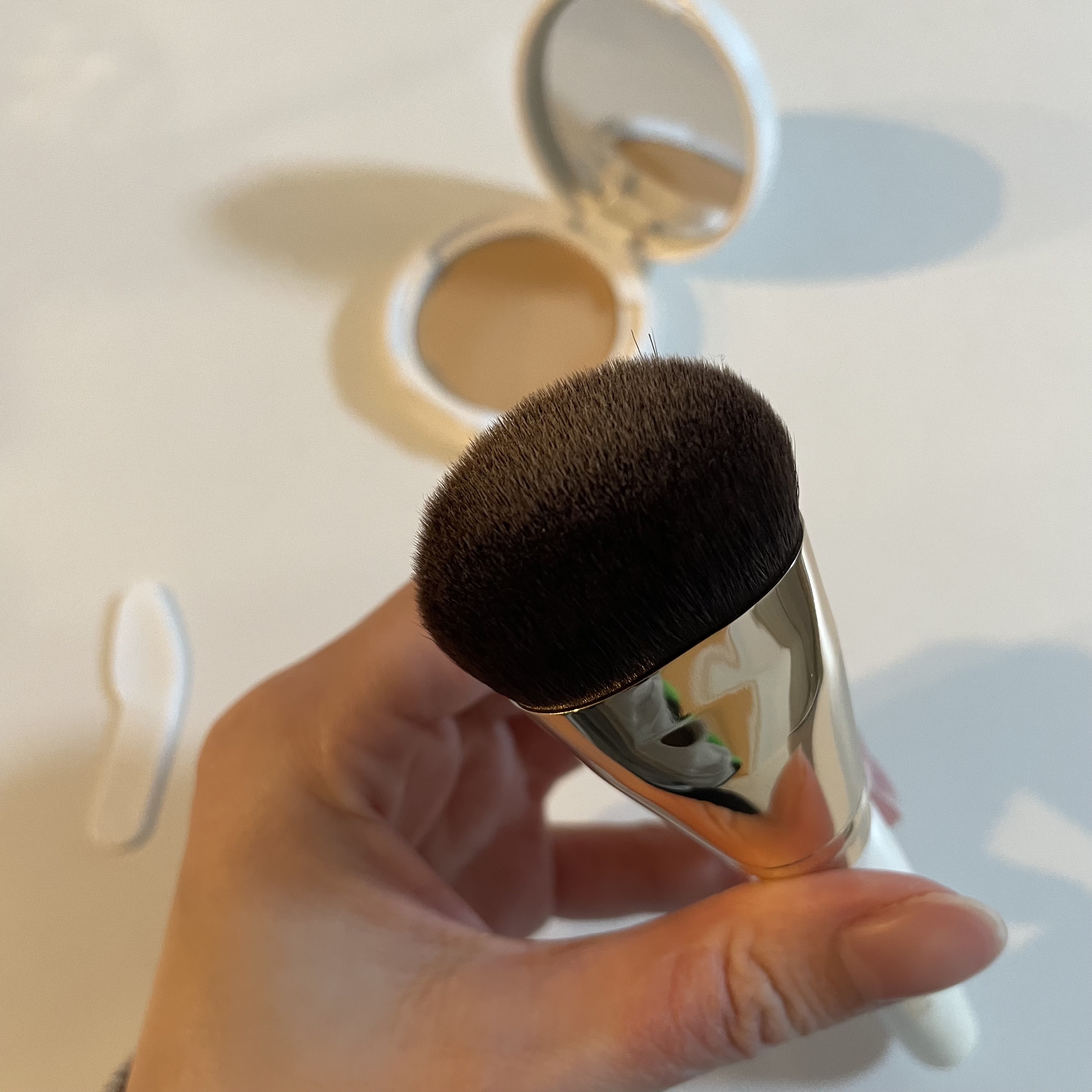 - 塗りのばす・重ねる・フラットにする 3つのメソッドで思いどおりの仕上がりに マーシュ・フィールドのファンデーションとの相性を考えて開発されたオリジナルブラシ。 毛先はしなやかで程よいコシがあり、ムラなく均一に仕上げることができます。 <ご使用法> ブラシの毛先にファンデーションを軽く含ませます。 ①やさしくすべらせて薄く塗りのばします。 ②カバーしたい部分にトントンと重ねます。 ③ブラシの毛先を拭き、塗った境目をなじませフラットにします。