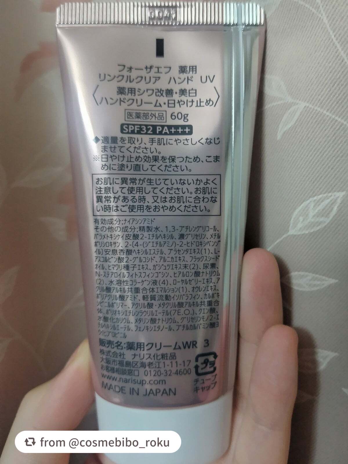 商品詳細情報ナリスアップ フォーザエフ 薬用 リンクルクリア ハンド UV