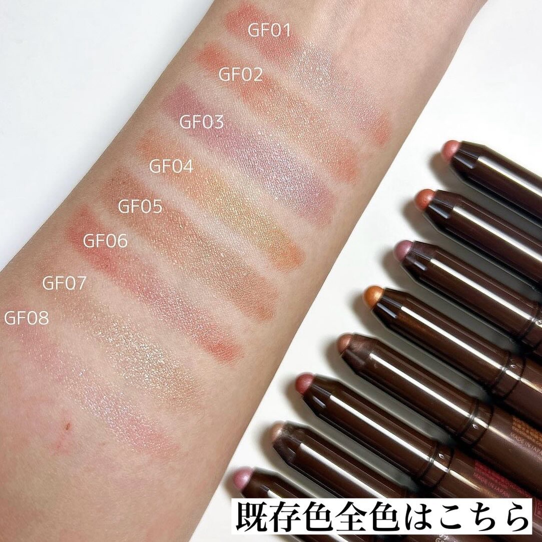 - <GF01 フラワーベース> チルトリメチコン、トリメチルシロキシケイ酸、合成フルオロフロゴパイト、ポリエチレン、ジフェニルシロキシフェニルトリメチコン、(アクリレーツ/アクリル酸ステアリル/メタクリル酸ジメチコン)コポリマー、リンゴ酸ジイソステアリル、キャンデリラロウ炭化水素、マイクロクリスタリンワックス、スクワラン、セラミドNP、セスキイソステアリン酸ソルビタン、トコフェロール、水添ヒマシ油、ホウケイ酸(Ca/Al)、マイカ、黄4、酸化チタン、酸化鉄、赤202 <GF02 エッグカップ> メチルトリメチコン、合成フルオロフロゴパイト、トリメチルシロキシケイ酸、ポリエチレン、リンゴ酸ジイソステアリル、ジフェニルシロキシフェニルトリメチコン、(アクリレーツ/アクリル酸ステアリル/メタクリル酸ジメチコン)コポリマー、キャンデリラロウ炭化水素、マイクロクリスタリンワックス、スクワラン、セラミドNP、セスキイソステアリン酸ソルビタン、トコフェロール、水酸化Al、水添ヒマシ油、ホウケイ酸(Ca/Al)、マイカ、黄4、酸化スズ、酸化チタン、酸化鉄、赤201 <GF03 ドリームキャッチャー> メチルトリメチコン、トリメチルシロキシケイ酸、合成フルオロフロゴパイト、ポリエチレン、リンゴ酸ジイソステアリル、ジフェニルシロキシフェニルトリメチコン、(アクリレーツ/アクリル酸ステアリル/メタクリル酸ジメチコン)コポリマー、キャンデリラロウ炭化水素、マイクロクリスタリンワックス、スクワラン、セラミドNP、セスキイソステアリン酸ソルビタン、トコフェロール、水添ヒマシ油、シリカ、グンジョウ、ホウケイ酸(Ca/Al)、マイカ、酸化チタン、酸化鉄、赤202 <GF04 チェダーディップ> メチルトリメチコン、合成フルオロフロゴパイト、トリメチルシロキシケイ酸、ポリエチレン、ジフェニルシロキシフェニルトリメチコン、(アクリレーツ/アクリル酸ステアリル/メタクリル酸ジメチコン)コポリマー、リンゴ酸ジイソステアリル、キャンデリラロウ炭化水素、マイクロクリスタリンワックス、スクワラン、セラミドNP、セスキイソステアリン酸ソルビタン、トコフェロール、水添ヒマシ油、ホウケイ酸(Ca/Al)、マイカ、酸化スズ、酸化チタン、酸化鉄 <GF05 ウッドトイ> メチルトリメチコン、合成フルオロフロゴパイト、トリメチルシロキシケイ酸、ポリエチレン、ジフェニルシロキシフェニルトリメチコン、(アクリレーツ/アクリル酸ステアリル/メタクリル酸ジメチコン)コポリマー、リンゴ酸ジイソステアリル、キャンデリラロウ炭化水素、マイクロクリスタリンワックス、スクワラン、セラミドNP、セスキイソステアリン酸ソルビタン、トコフェロール、水酸化Al、水添ヒマシ油、ホウケイ酸(Ca/Al)、マイカ、酸化チタン、酸化鉄 <GF06 ワイングラス> 合成フルオロフロゴパイト、メチルトリメチコン、トリメチルシロキシケイ酸、ポリエチレン、(アクリレーツ/アクリル酸ステアリル/メタクリル酸ジメチコン)コポリマー、ジフェニルシロキシフェニルトリメチコン、リンゴ酸ジイソステアリル、キャンデリラロウ炭化水素、マイクロクリスタリンワックス、スクワラン、セラミドNP、セスキイソステアリン酸ソルビタン、トコフェロール、水酸化Al、水添ヒマシ油、ホウケイ酸(Ca/Al)、マイカ、黄4、酸化チタン、酸化鉄、赤202 <GF09 ランプシェード> メチルトリメチコン、トリメチルシロキシケイ酸、合成フルオロフロゴパイト、合成ワックス、リンゴ酸ジイソステアリル、(アクリレーツ/アクリル酸ステアリル/メタクリル酸ジメチコン)コポリマー、ジフェニルシロキシフェニルトリメチコン、キャンデリラロウ炭化水素、マイクロクリスタリンワックス、スクワラン、セラミドNP、セスキイソステアリン酸ソルビタン、トコフェロール、水酸化Al、水添ヒマシ油、ホウケイ酸(Ca/Al)、マイカ、酸化スズ、酸化チタン、酸化鉄、赤202 <GF10 ブランケット> メチルトリメチコン、トリメチルシロキシケイ酸、合成フルオロフロゴパイト、合成ワックス、リンゴ酸ジイソステアリル、(アクリレーツ/アクリル酸ステアリル/メタクリル酸ジメチコン)コポリマー、ジフェニルシロキシフェニルトリメチコン、キャンデリラロウ炭化水素、マイクロクリスタリンワックス、スクワラン、セラミドNP、セスキイソステアリン酸ソルビタン、トコフェロール、水酸化Al、水添ヒマシ油、グンジョウ、ホウケイ酸(Ca/Al)、マイカ、黄4、酸化チタン、酸化鉄、赤202 <GF11 ビジューリング> メチルトリメチコン、合成フルオロフロゴパイト、トリメチルシロキシケイ酸、合成ワックス、リンゴ酸ジイソステアリル、(アクリレーツ/アクリル酸ステアリル/メタクリル酸ジメチコン)コポリマー、ジフェニルシロキシフェニルトリメチコン、キャンデリラロウ炭化水素、マイクロクリスタリンワックス、スクワラン、セラミドNP、セスキイソステアリン酸ソルビタン、トコフェロール、水酸化Al、水添ヒマシ油、ホウケイ酸(Ca/Al)、マイカ、黄4、酸化