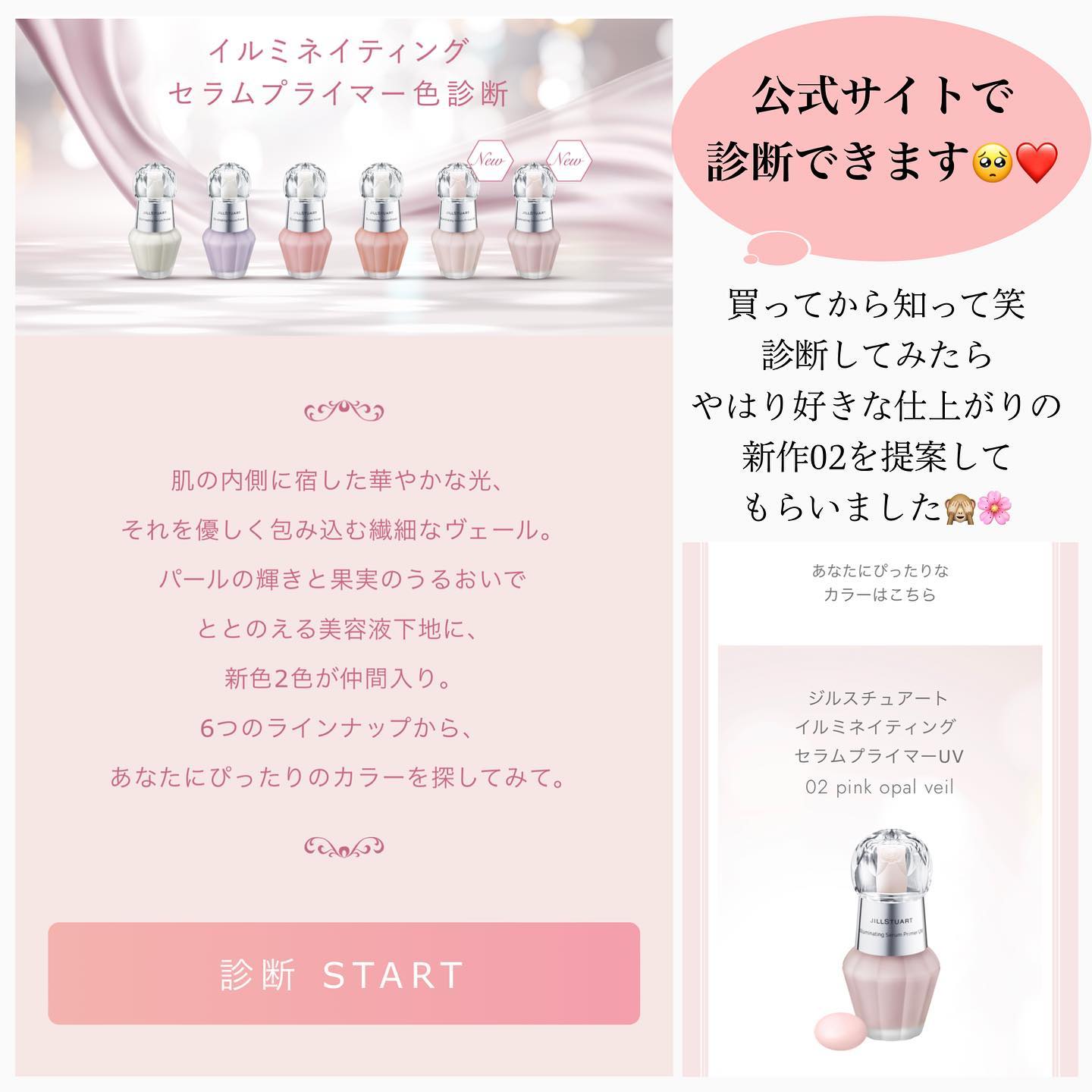 JILLSTUARTイルミネイティングセラムプライマーUVSPF40イルミネイティングセラムプライマーUV#02pinkopalveilSPF40/PA+++で☀紫外線対策にもなるし、ピンク系の下地が好き♡いいかなぁ〜と買ってみたぁ。🩷ピンク...