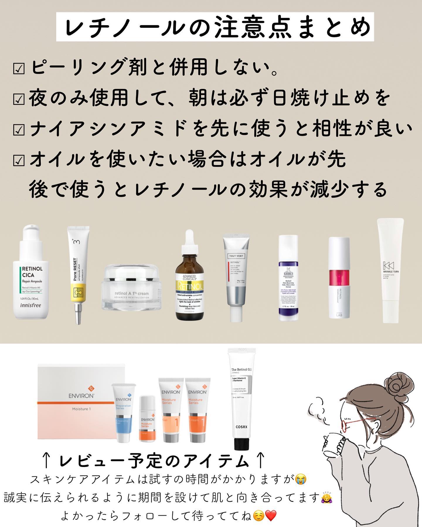\自分史上最愛💖美容成分/🧴レチノール🧴✨️‼️レビュー7選‼️✨️私的にも最も毛穴に効果のあった成分です👀なのでたくさんの商品使ってきたので一気にレビューしていきます😼👊⭕️VT:シカレチAエッセンス0.1敏感肌以外の初心者さんへ🔰❌VT:...