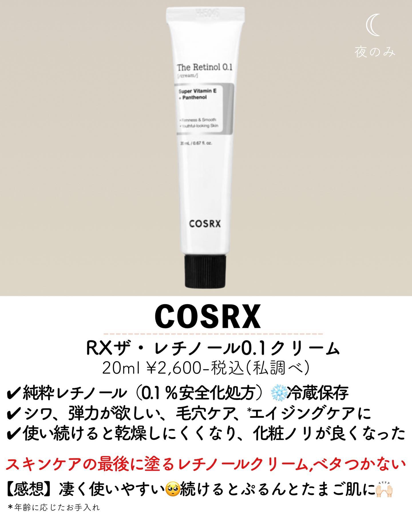 COSRX RXザ・レチノール0.1クリーム | 2,600円 |