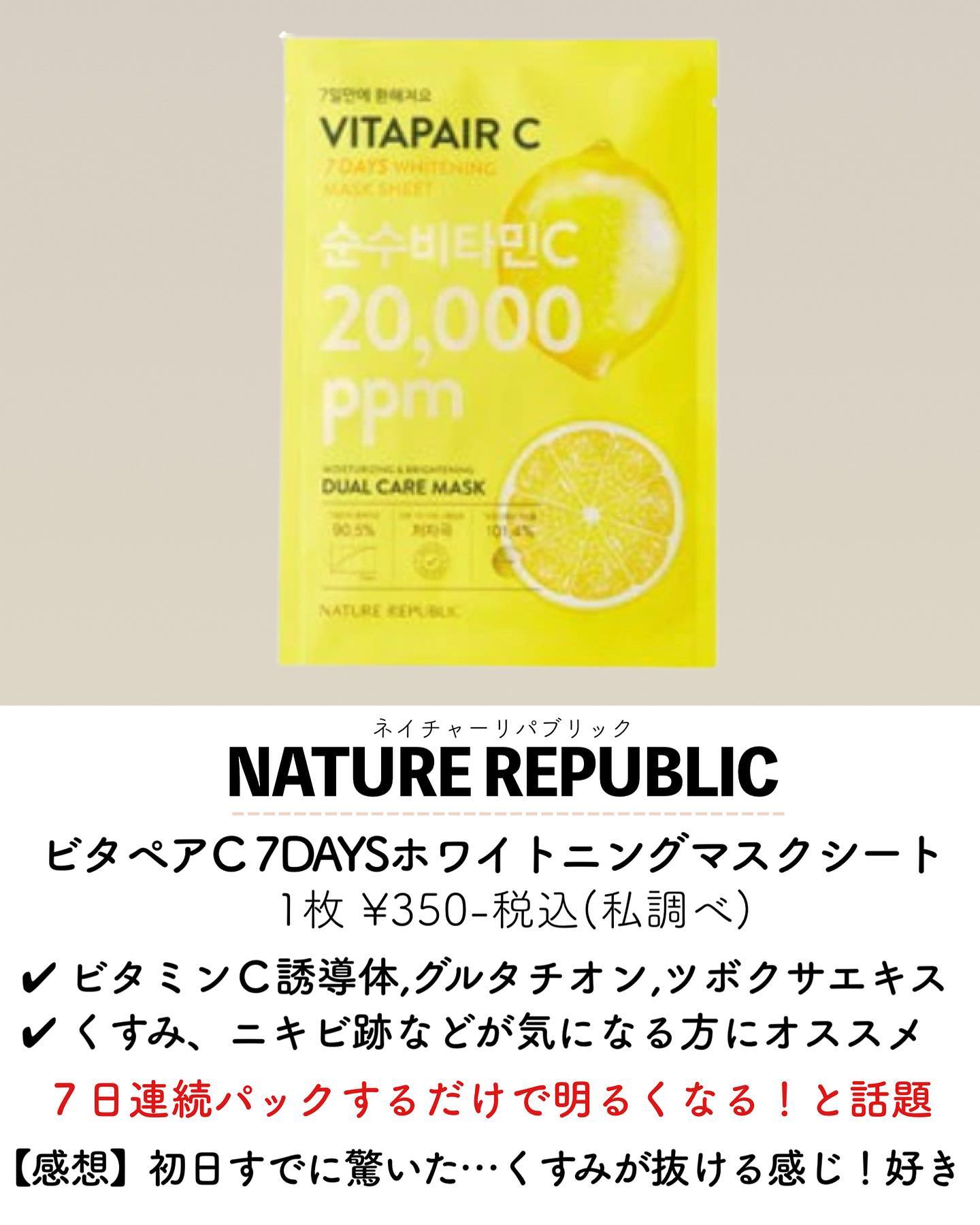 ネイチャーリパブリック ビタペアCデイリーシートマスク | 2,380円 |