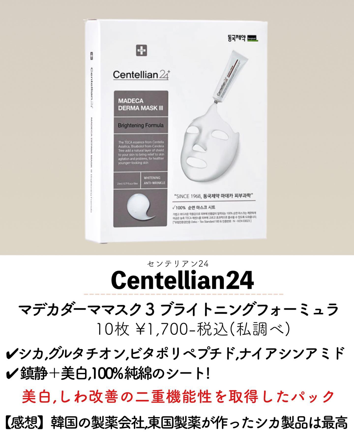 【#センテリアン24/#マデカダーママスク3ブライトニングフォーミュラ】乳液っぽいエッセンスがたっぷりのパック🫧結構油分感を感じるエッセンスで水分補給よりも肌の表面を保湿の膜で覆ってくれるイメージです。シートはかなり柔らかくて肌当たりがよく密...