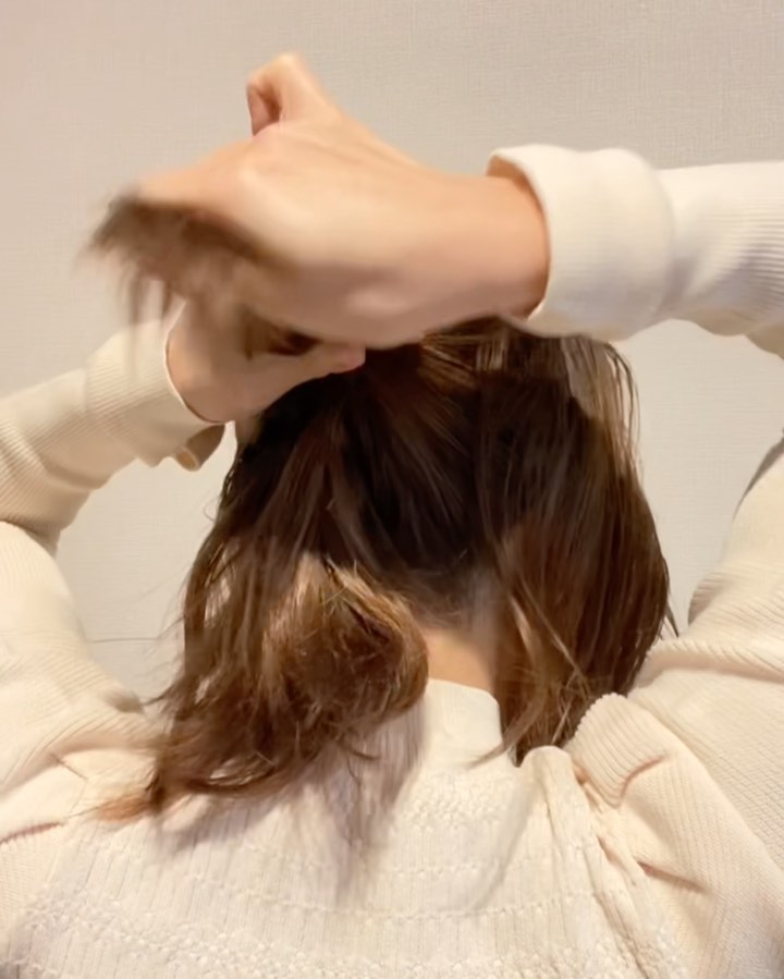 いつもご覧いただきありがとうございます 長くて髪が余る人は、下へスライドした時、左回りに1,2回捻りながらスライドすること! そしてそのままゴムごとお団子に被せるとバズりヘアになりますよん👌 保存して見返しながら、何度かやってみてくださいね✨