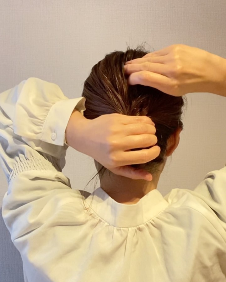 いつもご覧いただきありがとうございます 長くて髪が余る人は、下へスライドした時、左回りに1,2回捻りながらスライドすること! そしてそのままゴムごとお団子に被せるとバズりヘアになりますよん👌 保存して見返しながら、何度かやってみてくださいね✨