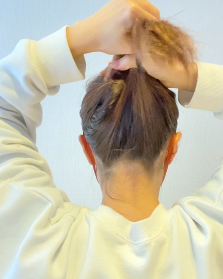 いつもご覧いただきありがとうございます 長くて髪が余る人は、下へスライドした時、左回りに1,2回捻りながらスライドすること! そしてそのままゴムごとお団子に被せるとバズりヘアになりますよん👌 保存して見返しながら、何度かやってみてくださいね✨