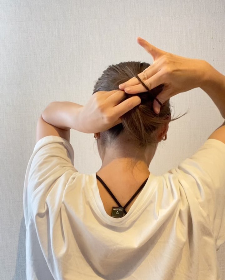 いつもご覧いただきありがとうございます 長くて髪が余る人は、下へスライドした時、左回りに1,2回捻りながらスライドすること! そしてそのままゴムごとお団子に被せるとバズりヘアになりますよん👌 保存して見返しながら、何度かやってみてくださいね✨