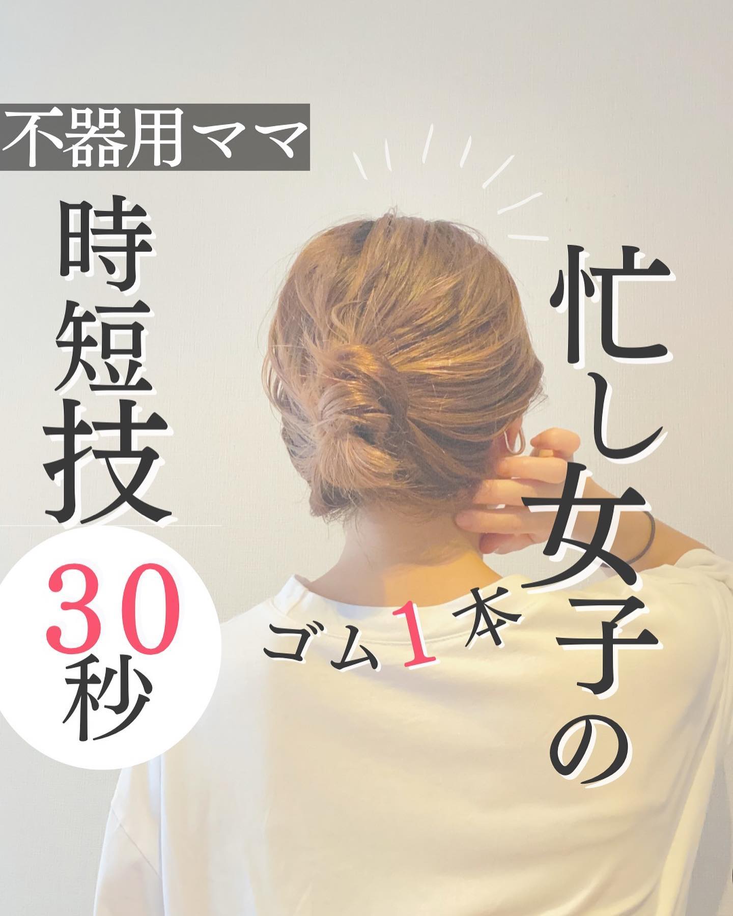 ピンで留めてますがゴムorクリップなどでも大丈夫です🙆♀️ 何度かやってみてくださいね〜✨ 不器用さん&忙しママでも出来る30秒⏰簡単気楽なヘアアレンジ ピンなし・アイロン使いません ゴムだけ時短テクで垢抜け✨