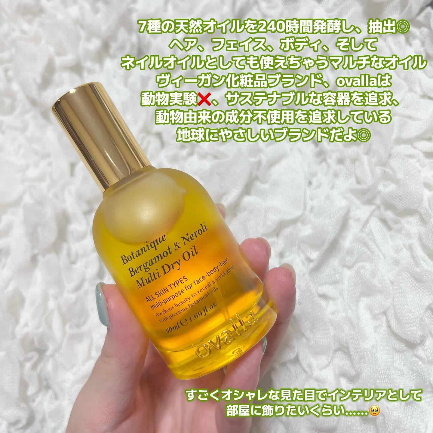 こちらほ7種の天然オイルを240時間も発酵し抽出されたもの✨ ネイル・ボディの保湿にも使用できるマルチヘアオイルが魅力なのです🌿 スプレータイプだと酸化もしにくいしベタつかずサラっとつけられます☺ こちらのボタニクドライオイルシリーズは地球に配慮しつつ五感の嗅覚・視覚も楽しめるアイテム🌿 柔らかい香りが漂い365日寄り添うヘアオイルがお気にいりです✨