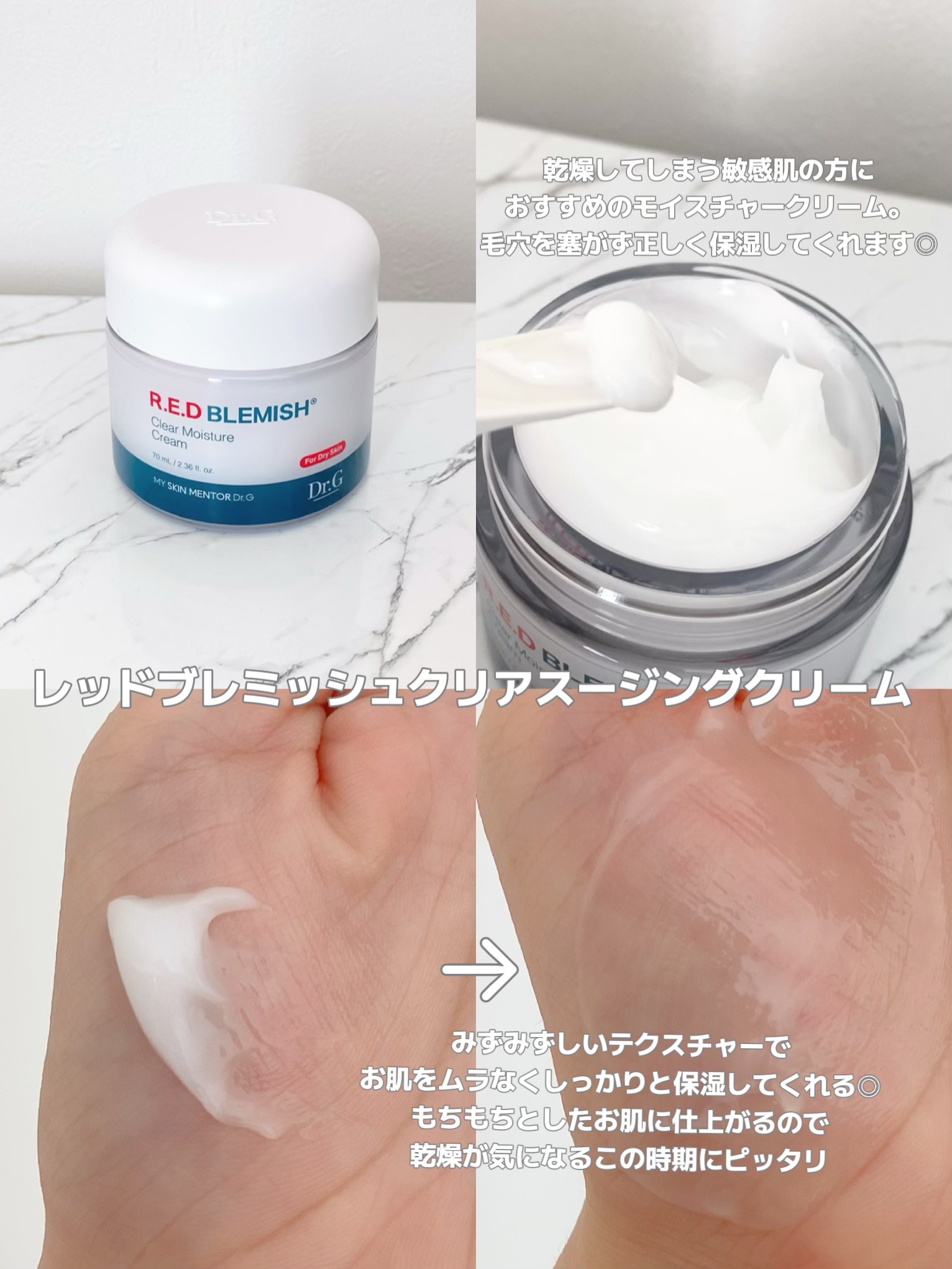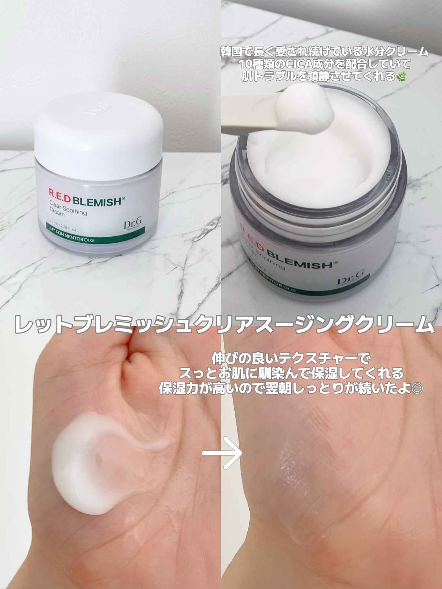#PRDr.G様からいただきました🩵レッドブレミッシュクリアスージングクリームレッドブレミッシュクリアモイスチャークリームスージングクリームは10種類のCICA成分配合で花粉や紫外線などで受けた刺激や刺激による肌トラブルを鎮静してくれる♡モイ...