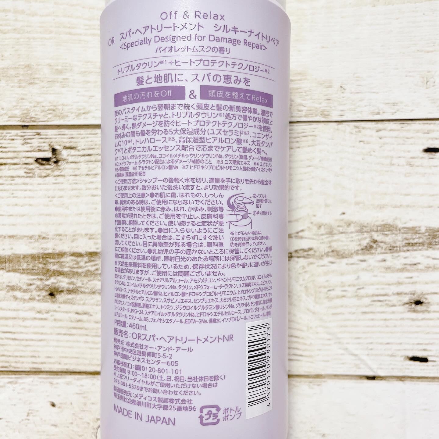 商品詳細情報Off&Relax OR スパ・シャンプー/ヘアトリートメント シルキーナイトリペア