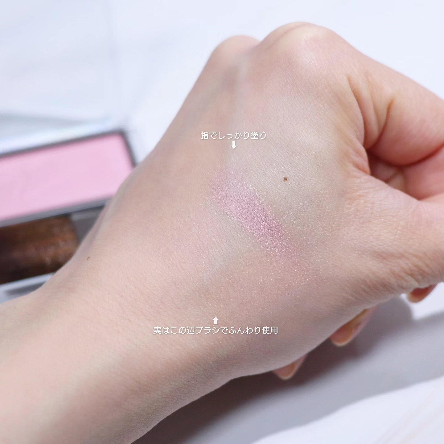 密着性が高く頬に馴染み、まるで肌の内側からにじみ出るような自然な血色感を演出 5種の美容保湿成分(カニナバラ果実油、ホホバ種子油、オリーブ果実油、マカデミア種子油、スクワラン)配合 色味は03ミルクモーヴにしてみました。明るめな優しいピンク色です。粉質もほわっとしてて、綺麗に塗れます。