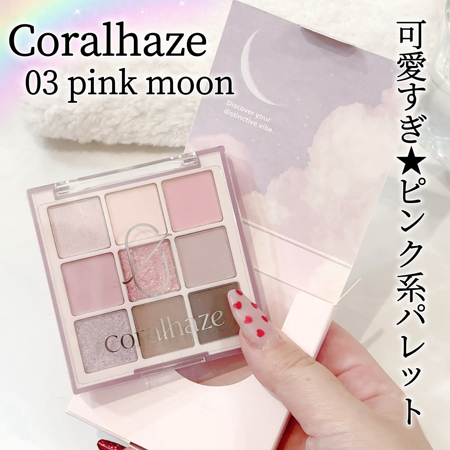透明感あふれる淡いラベンダーピンク🪻 普段あまり韓国コスメを使わないのでドラッグストアやバラエティショップなどで見たときの完全な偏見になりますが🤣 コーラルヘイズのパレットは9色入りだけどサイズ小さめで持ち運びしやすく、サラッとした粉質で発色も控えめでした。 #03 PINKMOONは青み寄りの淡いピンク系が揃ったカラー💓 特に目を惹くのが真ん中のグリッター🫶🏻