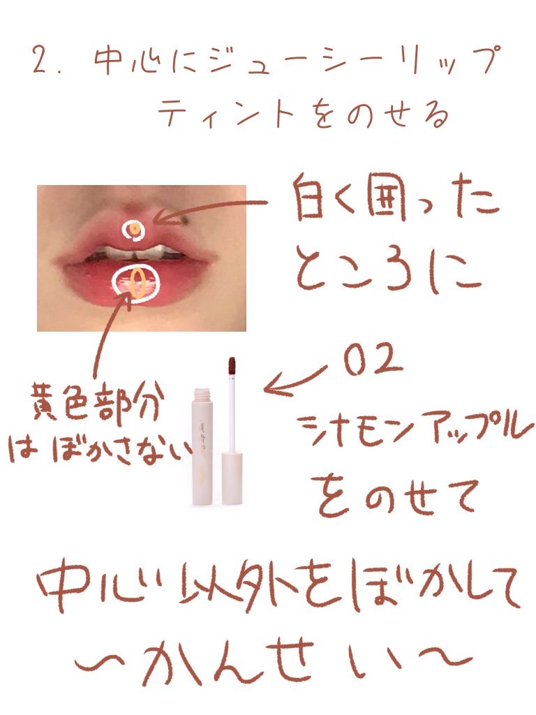自分のことをブルベ夏だと思い込んでいるのであまりイエベカラーのリップは使っていなかったのですが、仕上がりが良すぎたので共有したいと思います! まず部分的にマットリップをおいて綿棒でぼかして全体に広げる 綿棒を使うことで口角がめちゃんこ塗りやすいです 唇の中心部分にツヤ系リップを乗せて真ん中以外をぼかす 人中のくぼみ部分にもマットリップをのせてあげるともっとかわいくなります^_^
