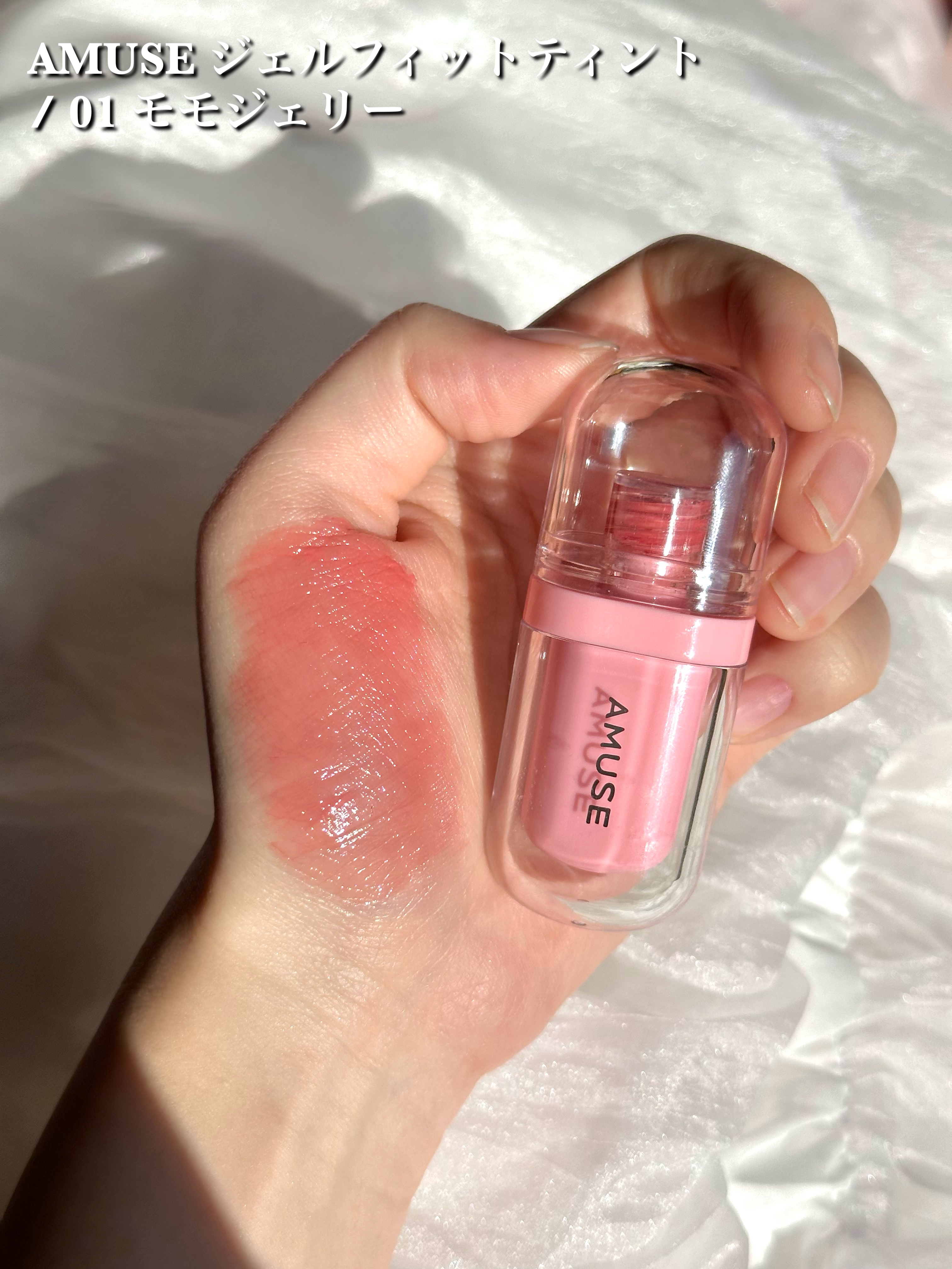ぷにゅっとジェリーティント♡🏷️AMUSEジェルフィットティント01モモジェリー02ヘルシーサーモン10フィグジャムピンクモモ桃が好きすぎる🍑モモジェリーとピンクモモ結構似てるかも...?#春コスメ購入品レポ#メガ割購入品#amuse#ジェル...