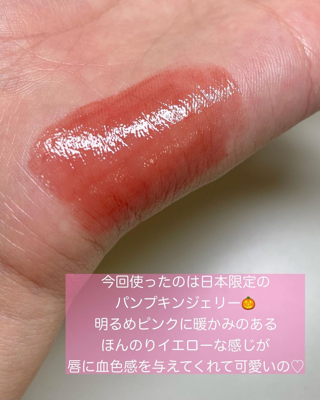 - <01 モモジェリー> Water、Diphenyl Dimethicone、Diisostearyl Malate、Bis-Diglyceryl Polyacyladipate-2、Hydrogenated Polyisobutene、Bis-Behenyl/Isostearyl/Phytosteryl Dimer Dilinoleyl Dimer Dilinoleate、Cetyl PEG/PPG-10/1 Dimethicone、Diglycerin、Hydrogenated Polydecene、Dipropylene Glycol、Polysorbate 60、Sorbitan Isostearate、Hydroxyethyl Acrylate/Sodium Acryloyldimethyl Taurate Copolymer、Pentylene Glycol、Squalane、Titanium Dioxide (CI 77891)、Ethylene/Propylene Copolymer、Ceteareth-20、Phenoxyethanol、Polyglycerin-3、Yellow 5 (CI 19140)、Red 33 (CI 17200)、Fragrance、Ethylhexylglycerin、Glycerin、Aluminum Hydroxide、Ammonium Polyacrylate、Yellow 6 (CI 15985)、Butylene Glycol、Blue 1 (CI 42090)、Tocopheryl Acetate、Prunus Persica (Peach) Fruit Extract、1,2-Hexanediol、Sodium Hyaluronate、Hydroxypropyltrimonium Hyaluronate、Sodium Acetylated Hyaluronate、Hydrolyzed Hyaluronic acid、Hyaluronic Acid、Sodium Hyaluronate Crosspolymer、Hydrolyzed Sodium Hyaluronate、Potassium Hyaluronate <02 ヘルシーサーモン> Water、Diphenyl Dimethicone、Diisostearyl Malate、Bis-Diglyceryl Polyacyladipate-2、Hydrogenated Polyisobutene、Bis-Behenyl/Isostearyl/Phytosteryl Dimer Dilinoleyl Dimer Dilinoleate、Cetyl PEG/PPG-10/1 Dimethicone、Diglycerin、Hydrogenated Polydecene、Dipropylene Glycol、Polysorbate 60、Sorbitan Isostearate、Hydroxyethyl Acrylate/Sodium Acryloyldimethyl Taurate Copolymer、Pentylene Glycol、Squalane、Ethylene/Propylene Copolymer、Ceteareth-20、Phenoxyethanol、Titanium Dioxide (CI 77891)、Polyglycerin-3、Yellow 6 (CI 15985)、Fragrance、Ethylhexylglycerin、Red 33 (CI 17200)、Glycerin、Red 28 (CI 45410)、Aluminum Hydroxide、Ammonium Polyacrylate、Yellow 5 (CI 19140)、Butylene Glycol、Tocopheryl Acetate、Blue 1 (CI 42090)、Prunus Persica (Peach) Fruit Extract、1,2-Hexanediol、Sodium Hyaluronate、Hydroxypropyltrimonium Hyaluronate、Sodium Acetylated Hyaluronate、Hydrolyzed Hyaluronic acid、Hyaluronic Acid、Sodium Hyaluronate Crosspolymer、Hydrolyzed Sodium Hyaluronate、Potassium Hyaluronate <03 ヌーディーピンク> Water、Diphenyl Dimethicone、Diisostearyl Malate、Bis-Diglyceryl Polyacyladipate-2、Hydrogenated Polyisobutene、Bis-Behenyl/Isostearyl/Phytosteryl Dimer Dilinoleyl Dimer Dilinoleate、Cetyl PEG/PPG-10/1 Dimethicone、Diglycerin、Hydrogenated Polydecene、Dipropylene Glycol、Polysorbate 60、Sorbitan Isostearate、Hydroxyethyl Acrylate/Sodium Acryloyldimethyl Taurate Copolymer、Pentylene Glycol、Squalane、Ethylene/Propylene Copolymer、Ceteareth-20、Titanium Dioxide (CI 77891)、Phenoxyethanol、Polyglycerin-3、Red 33 (CI 17200)、Yellow 5 (CI 19140)、Fragrance、Ethylhexylglycerin、Glycerin、Aluminum Hydroxide、Ammonium Polyacrylate、Butylene Glycol、Blue 1 (CI 42090)、Tocopheryl Acetate、Prunus Persica (Peach) Fruit Extract、1,2-Hexanediol、Sodium Hyaluronate、Hydroxypropyltrimonium Hyaluronate、Sodium Acetylated Hyaluronate、Hydrolyzed Hyaluronic acid、Hyaluronic Acid、Sodium Hyaluronate Crosspolymer、Hydrolyzed Sodium Hyaluronate、Potassium Hyaluronate <04 ローズミルク> Water、Diphenyl Dimethicone、Diisostearyl Malate、Bis-Diglyceryl Polyacyladipate-2、Hydrogenated Polyisobutene、Bis-Behenyl/Isostearyl/Phytosteryl Dimer Dilinoleyl Dimer Dilinoleate、Cetyl PEG/PPG-10/1 Dimethicone、Diglycerin、Hydrogenated Polydecene、Dipropylene Glycol、Polysorbate 60、Sorbitan Isostearate、Hydroxyethyl Acrylate/Sodium Acryloyldimethyl Taurate Copolymer、Pentylene Glycol、Squalane、Ethylene/Propylene Copolymer、Ceteareth-20、Titanium Dioxide (CI 77891)、Phenoxyethanol、Polyglycerin-3、Red 28 (CI 45410)、Yellow 6 (CI 15985)、Fragrance、Ethylhexylglycerin、Red 33 (CI 17200)、Glycerin、Aluminum Hydroxide、Ammonium Polyacrylate、Butylene Glycol、Blue 1 (CI 42090)、Tocopheryl Acetate、Prunus Persica (Peach) Fruit Extract、1,2-Hexanediol、Sodium Hyaluronate、Hydroxypropyltrimonium Hyaluronate、Sodium Acetylated Hyaluronate、Hydrolyzed Hyaluronic acid、Hyaluronic Acid、Sodium Hyaluronate Crosspolymer、Hydrolyzed Sodium Hyaluronate、Potassium Hyaluronate <05 ベージュフィグ> Water、Diphenyl Dimethicone、Diisostearyl Malate、Bis-Diglyceryl Polyacyladipate-2、Hydrogenated Polyisobutene、Bis-Behenyl/Isostearyl/Phytosteryl Dimer Dilinoleyl Dimer Dilinoleate、Cetyl PEG/PPG-10/1 Dimethicone、Diglycerin、Hydrogenated Polydecene、Dipropylene Glycol、Polysorbate 60、Sorbitan Isostearate、Hydroxyethyl Acrylate/Sodium Acryloyldimethyl Taurate Copolymer、Pentylene Glycol、Squalane、Titanium Dioxide (CI 77891)、Ethylene/Propylene Copolymer、Ceteareth-20、Phenoxyethanol、Polyglycerin-3、Yellow 5 (CI 19140)、Red 33 (CI 17200)、Fragrance、Ethylhexylglycerin、Yellow 6 (CI 15985)、Glycerin、Aluminum Hydroxide、Ammonium Polyacrylate、Butylene Glycol、Blue 1 (CI 42090)、Tocopheryl Acetate、Prunus Persica (Peach) Fruit Extract、1,2-Hexanediol、Sodium Hyaluronate、Hydroxypropyltrimonium Hyaluronate、Sodium Acetylated Hyaluronate、Hydrolyzed Hyaluronic acid、Hyaluronic Acid、Sodium Hyaluronate Crosspolymer、Hydrolyzed Sodium Hyaluronate、Potassium Hyaluronate <06 ソウルガール> Water、Diphenyl Dimethicone、Diisostearyl Malate、Bis-Diglyceryl Polyacyladipate-2、Hydrogenated Polyisobutene、Bis-Behenyl/Isostearyl/Phytosteryl Dimer Dilinoleyl Dimer Dilinoleate、Cetyl PEG/PPG-10/1 Dimethicone、Diglycerin、Hydrogenated Polydecene、Dipropylene Glycol、Polysorbate 60、Sorbitan Isostearate、Hydroxyethyl Acrylate/Sodium Acryloyldimethyl Taurate Copolymer、Pentylene Glycol、Squalane、Ethylene/Propylene Copolymer、Ceteareth-20、Titanium Dioxide (CI 77891)、Phenoxyethanol、Polyglycerin-3、Red 33 (CI 17200)、Yellow 6 (CI 15985)、Fragrance、Ethylhexylglycerin、Yellow 5 (CI 19140)、Glycerin、Aluminum Hydroxide、Ammonium Polyacrylate、Blue 1 (CI 42090)、Butylene Glycol、Tocopheryl Acetate