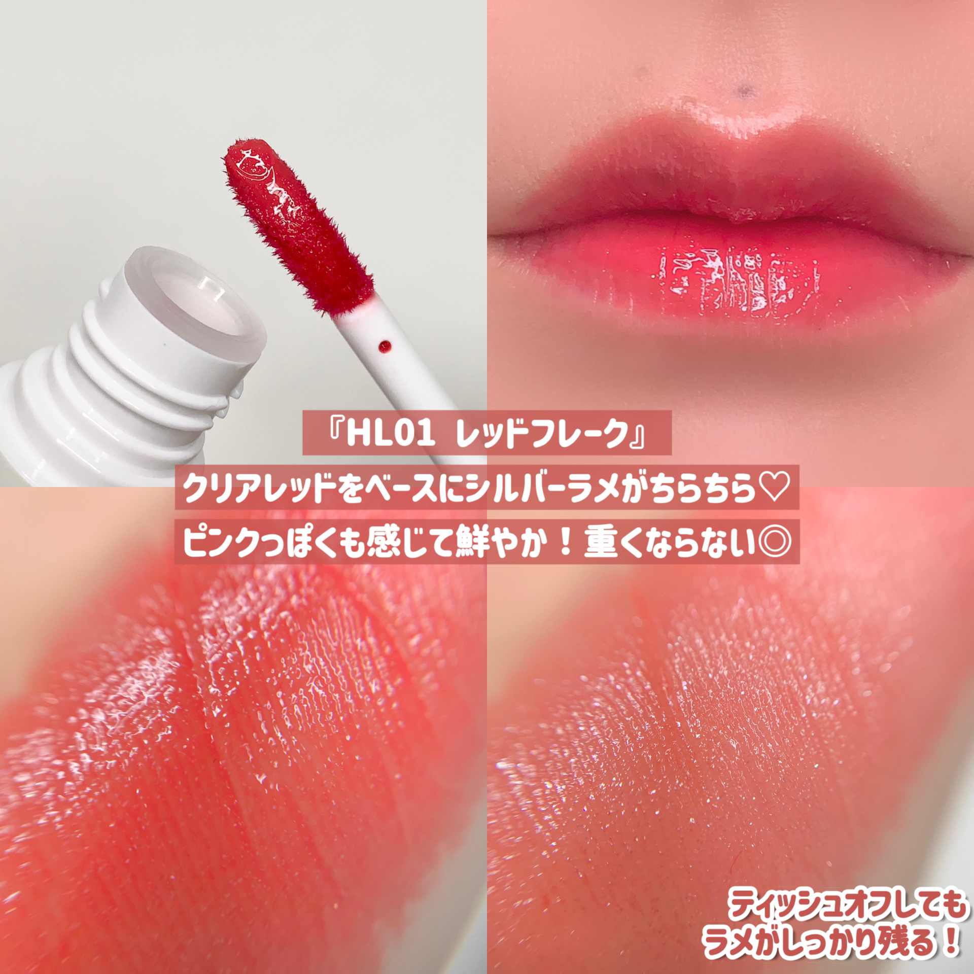 - プリンのようなぷるぷる光沢感が魅力的なグロッシーリップティントです。
