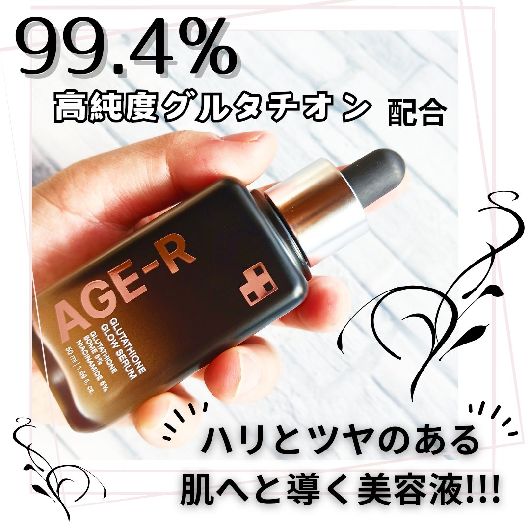 - 高純度99.4%のグルタチオン*を配合し、ハリツヤ肌に導く美容液です。 肌に馴染みやすいリン脂質製のカプセルにグルタチオン成分*を閉じ込め、肌の角質層までうるおいで満たします。 ☑グルタチオンソーム*:50,000ppm ☑ナイアシンアミド* 5%配合 ☑べたつかずしっとりツヤ肌 ☑美顔器AGE-R スキンブースターショットと一緒に使えます 化粧水などでお肌を整えたあと、適量を取り、お肌のキメに沿ってまんべんなく塗った後、やさしくなじませます。 *保湿成分 ■お肌に異常が生じていないかよく注意してご使用ください。化粧品がお肌に合わないとき即ち次のような場合には、使用を中止してください。そのまま使 用を続けますと、症状を悪化させることがありますので、皮膚科専門医等にご相談されることをおすすめします。また、傷やはれもの、しっしん等の異常が ある部位には、ご使用にならないでください。 (1)使用中、赤味、はれ、かゆみ、刺激、色抜け(白斑等)や黒ずみ等の異常があらわれた場合 (2)使用したお肌に、直射日光があたって上記のような異常があらわれた場合 ■目に入らないようご注意ください。目に入ったときは、こすらずにすぐに洗い流してください。その後、目に異物感など異常が残る場合は、眼科専門医へ ご相談されることをおすすめします。 ■極端に高温又は低温の場所、直射日光のあたる場所には保管しないでください。 ■開封後なるべく早めに使用してください。 ■ご使用後はフタをきちんと閉めてください。 ■乳児、子供の手の届かない所に保管してください。