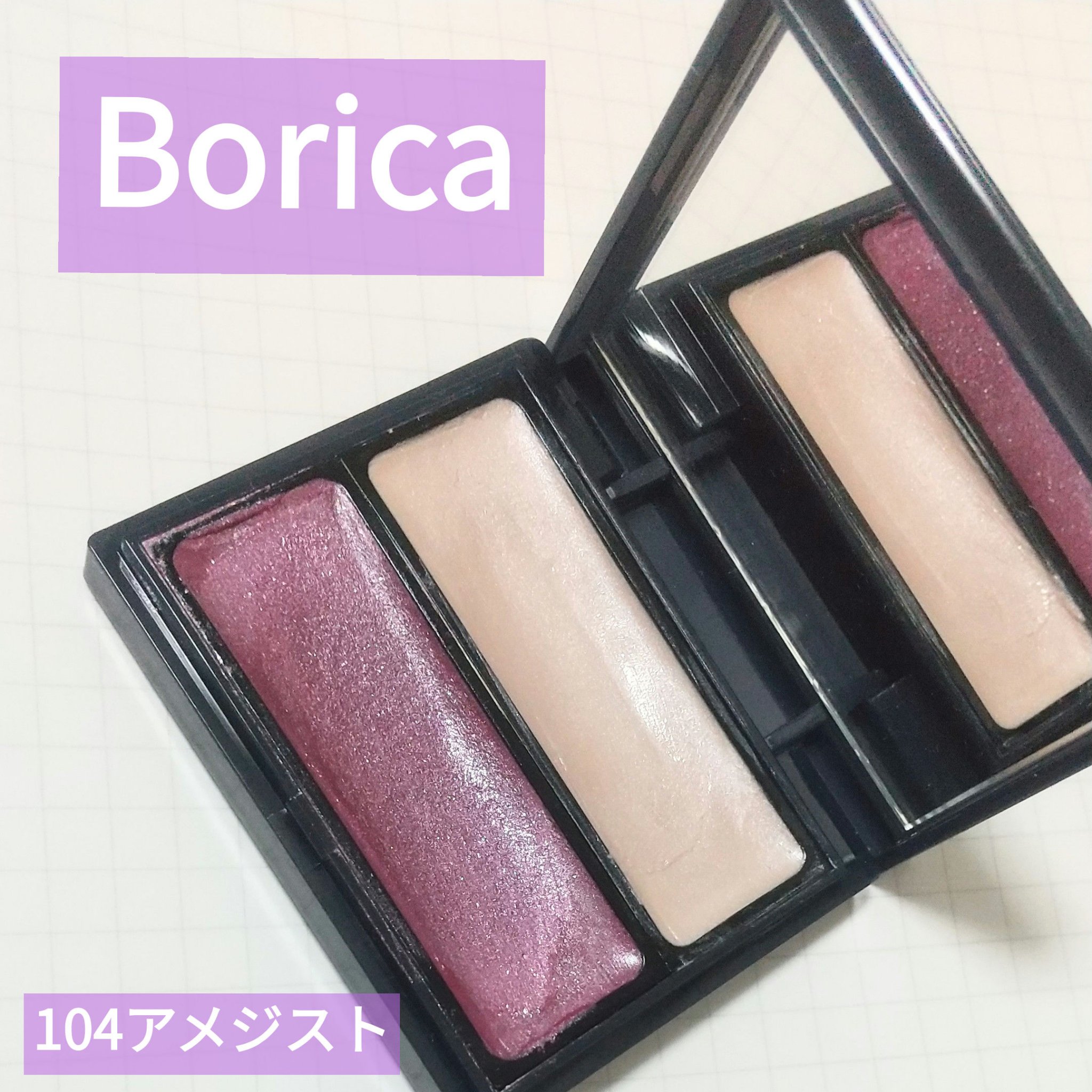 ボリカのクリームハイライトとチークがめちゃカワ❤️ 贅沢美容成分配合 使い続けることで、素肌からも美しく。 光を纏うような繊細なツヤ 1つのパレットで立体感と血色感を演出。※1 104 アメジスト 透明感のある多幸感溢れる印象に。 クリームタイプのハイライトとチーク♡ マスク😷 が自由選択になった今が使い時(*´꒳`*)♡♥️ ハイライトは濡れツヤ感がパウダーとは違った輝きで めちゃ綺麗✿゚❀.(*´▽`*)❀.゚✿ チークカラーが お気に入りでパープル💜が綺麗な頬を演出してくれ ます! ブルベさんイチオシ♡ 下地チークとしても使えて 上からパープルチークを重ねたら落ちにくいしツヤも 足されてカワイイ💠ですよ😊 お直しにもコレ1つでハイライト、チークが直せるので カバンに👜入れて出かけてます🍀*゜ ハイライトはアイシャドウベースにも使ってるけど、 粉とび、ラメ落ちしにくくなるから⭕️︎👍🏻 ̖́-