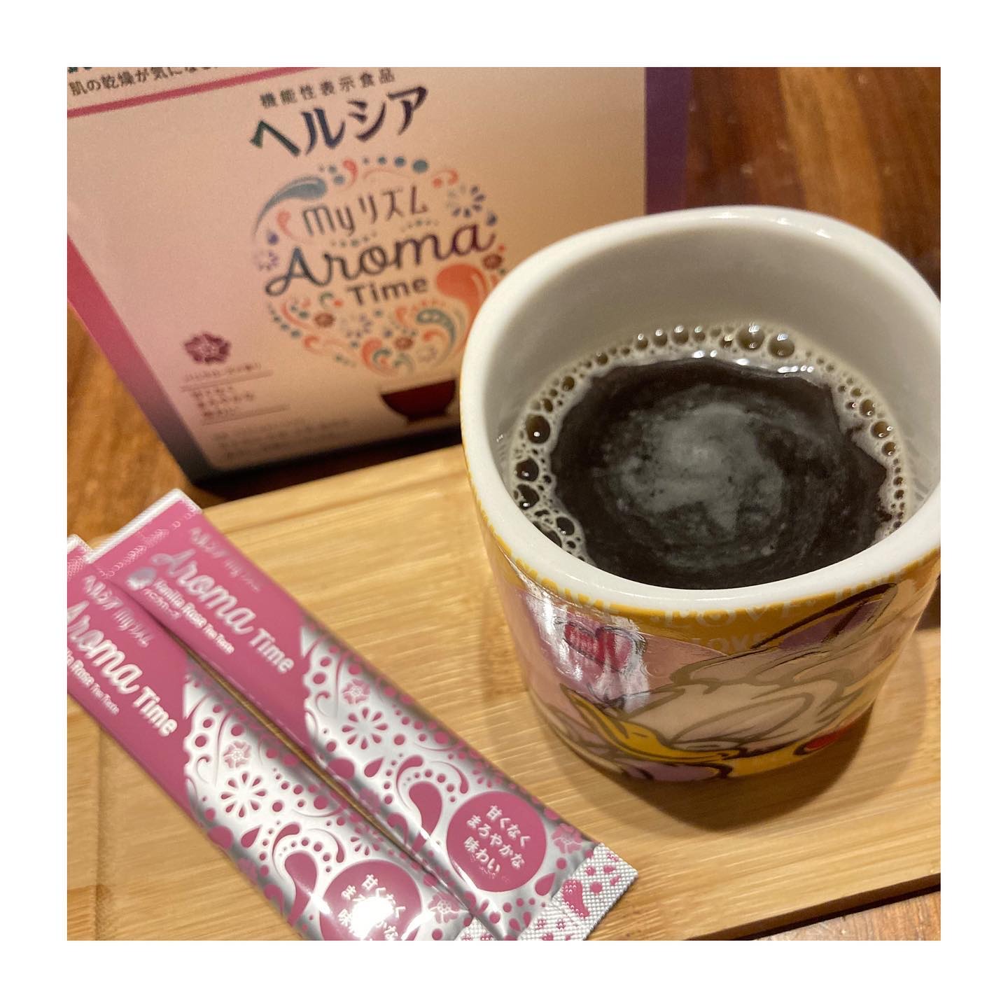 これ、ふわっとバニラローズの香り、ほんのり甘い香りがするのに味は甘くなくて、一日の中でいつ飲んでもいいからリラックスタイムのコーヒー代わりに飲んだり、お茶する感じで飲めるのがいいなと思ったよ。 1杯分がスティック型で入っていて、粉はラサラサで溶けやすかったよ。 体脂肪や肌の乾燥ケアができるの嬉しいね☺
