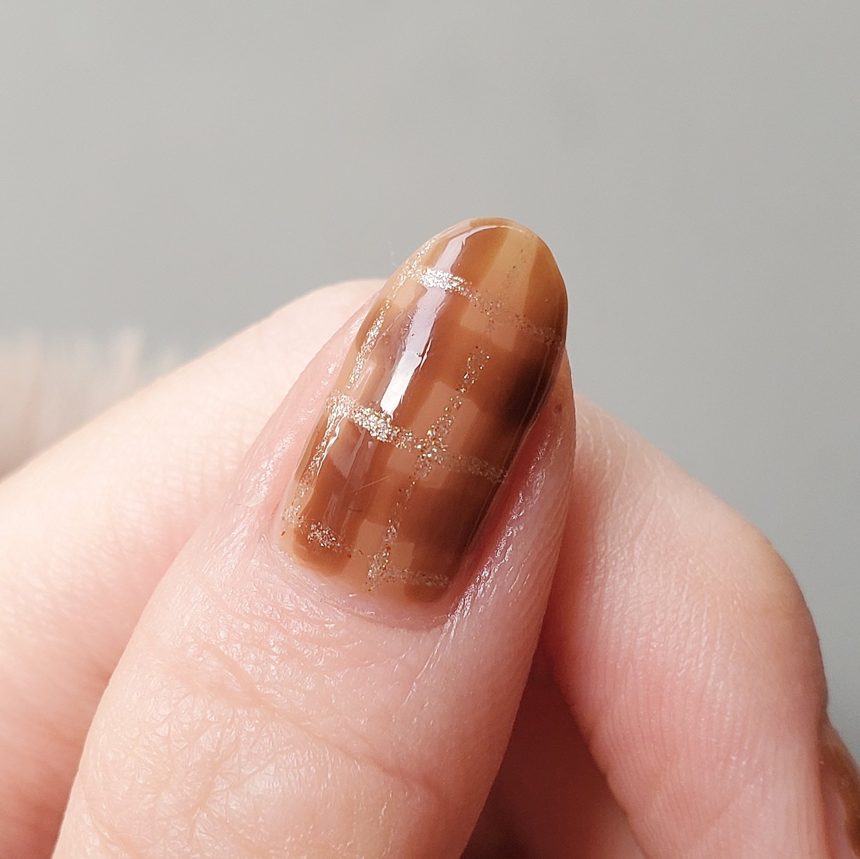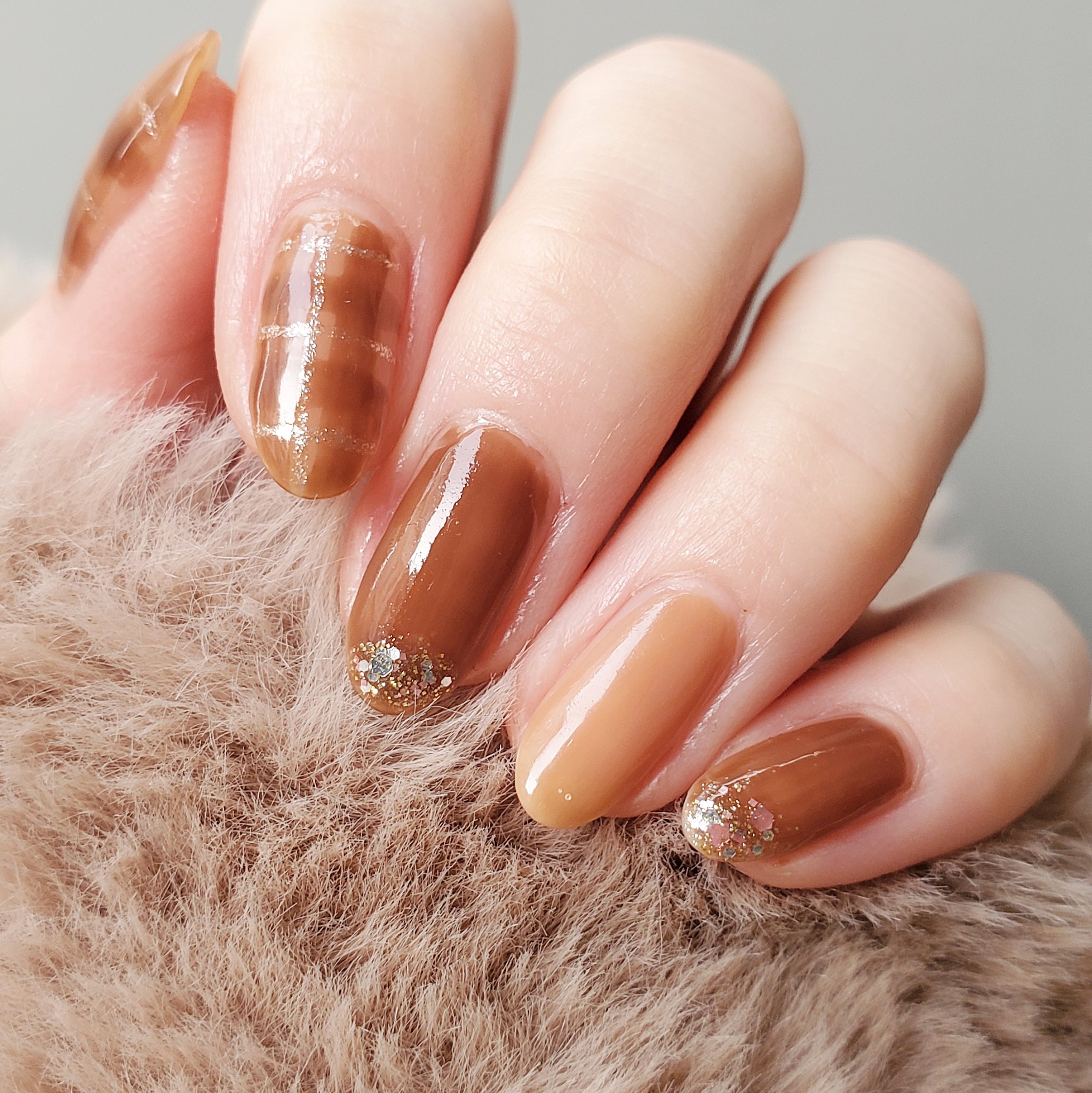 アンドバイロムアンドのこのカラー可愛くて気に入ってる😘 ミルクベリーってカラーなんだけど、まろやかな感じの色味のネイルってほんと好き! 馴染みやすくて使いやすいし、秋冬にもピッタリなカラーだと思う〜✨ ミルクベリーは2度塗りしてあって、薬指の爪先の斜めにシルバーのラメをアクセントに塗ったよ。