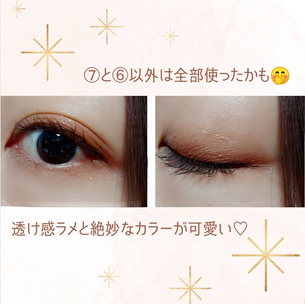 とにかくラメの質感とパウダーの透明感がすごくて、濡れたような艶の目元になる✨✨ 3枚目の目元写真はあんまりラメ感出てないんだけど、 4枚目の動画を見てみて欲しい。 色味は濃くないのにキラ艶爆発してる♥♥ ラメってポイントで使うイメージだけど、結構大胆に使っても素敵ですね👏♥️