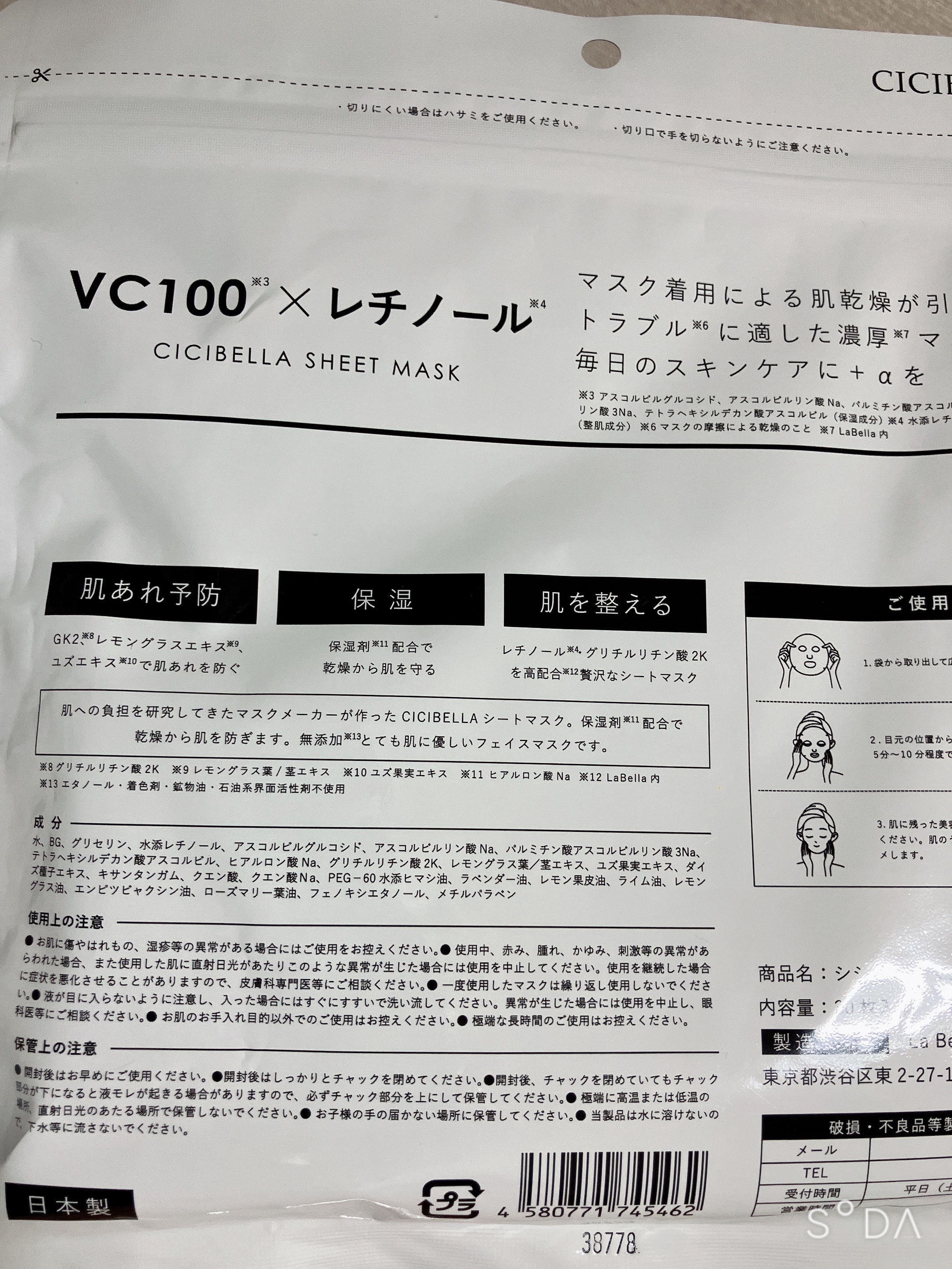商品詳細情報CICIBELLA シートマスク VC100+レチノール