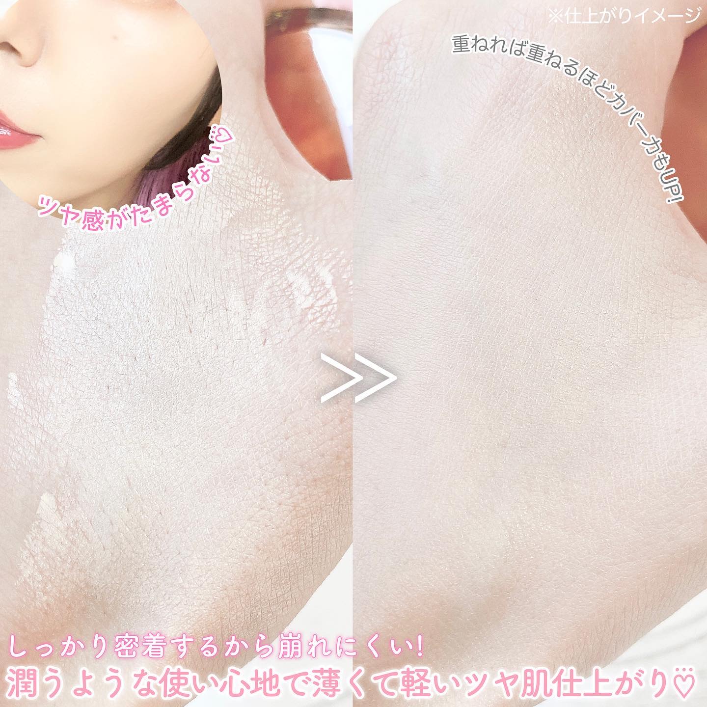 するする伸びよくピタッと肌に密着するクリームテクスチャーで、毛穴・凹凸気になる肌のアラ、シミや色ムラもナチュラルにカバーしてくれました✨ スキンケアのような軽い使い心地で、内側からうるおいがにじみでるようなツヤ感のある仕上がり♡⃛ 私が使った 01 ライトベージュ は肌なじみの良いライトベージュで、ナチュラルメイクならこれ1つでも十分なくらい◎ デパコスで3300円っていうコスパのよさも嬉しいポイント🥹💓