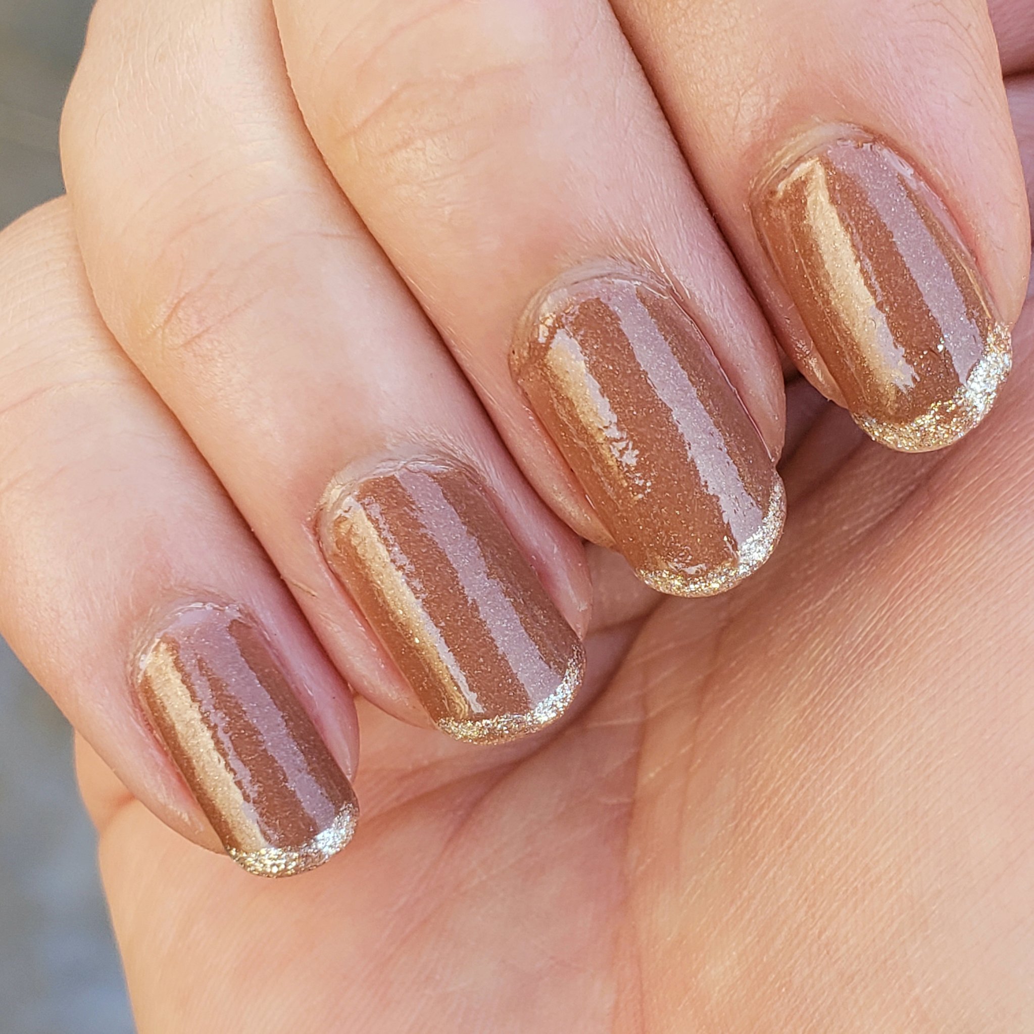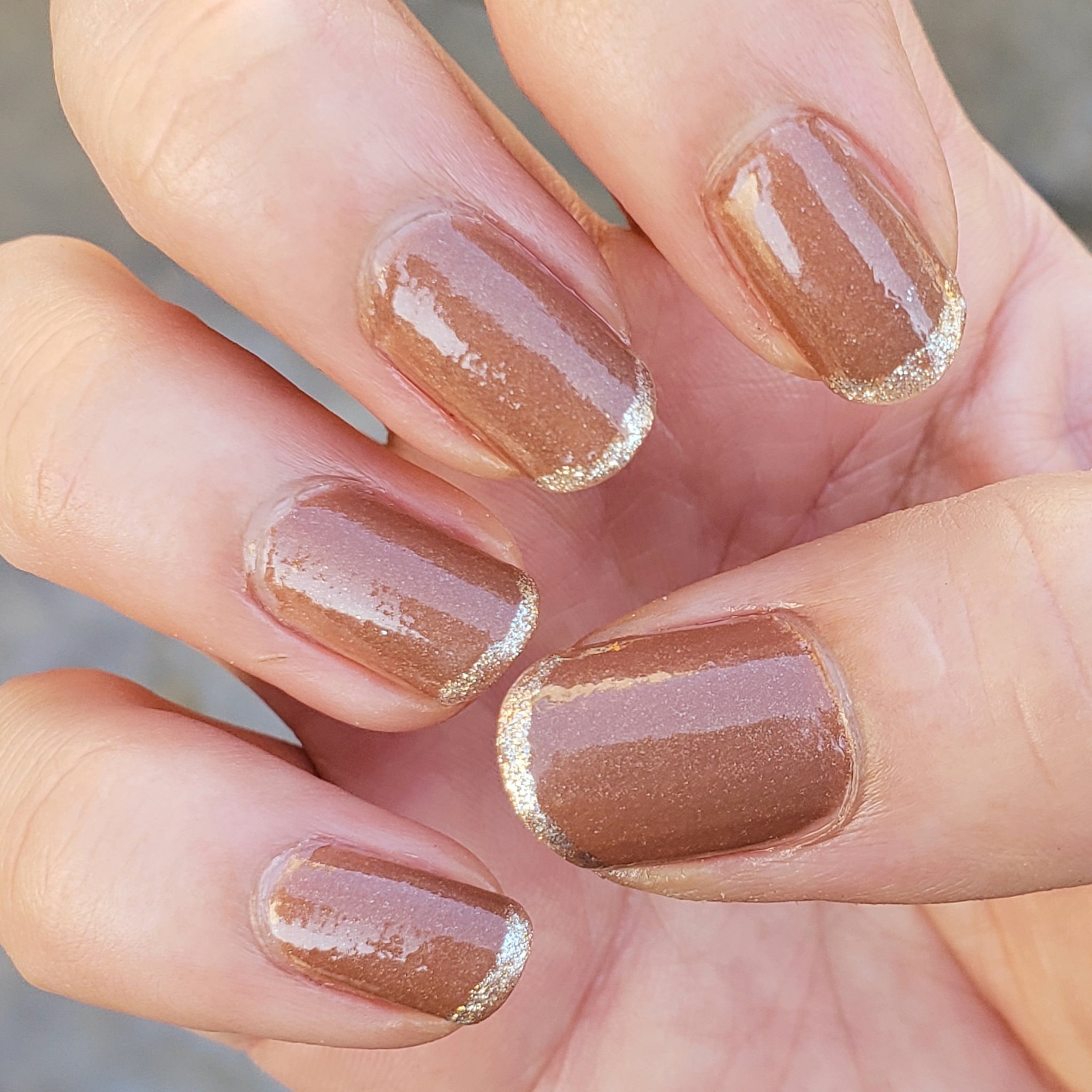 ポイントとしては、ガラスフレンチ部分は一息でやること…かな。 手順でいうと②~④だね。ベースにしたローズミルクティーが乾いたら、フレンチラインをひくところからメタルホロを貼り付けるところまでサッサッサッと💨 下準備として、メタルホロはちょうどいい大きさに切っておくと作業がスムーズ◎ それから、メタルホロを使うときは下にティッシュかキッチンペーパーを敷いておくと片付けもラク◎ 指一本ずつの作業だから、ネイルにかかる時間がかなり長くなるけど、やっぱりガラスフレンチは可愛い🖤