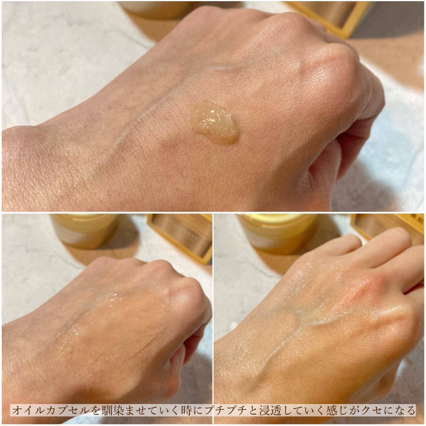 | 透明なジェルに黄色い粒がたっぷり。オイルカプセルによるリッチなコクうるがクセになる。 | 詳細を見る | ||