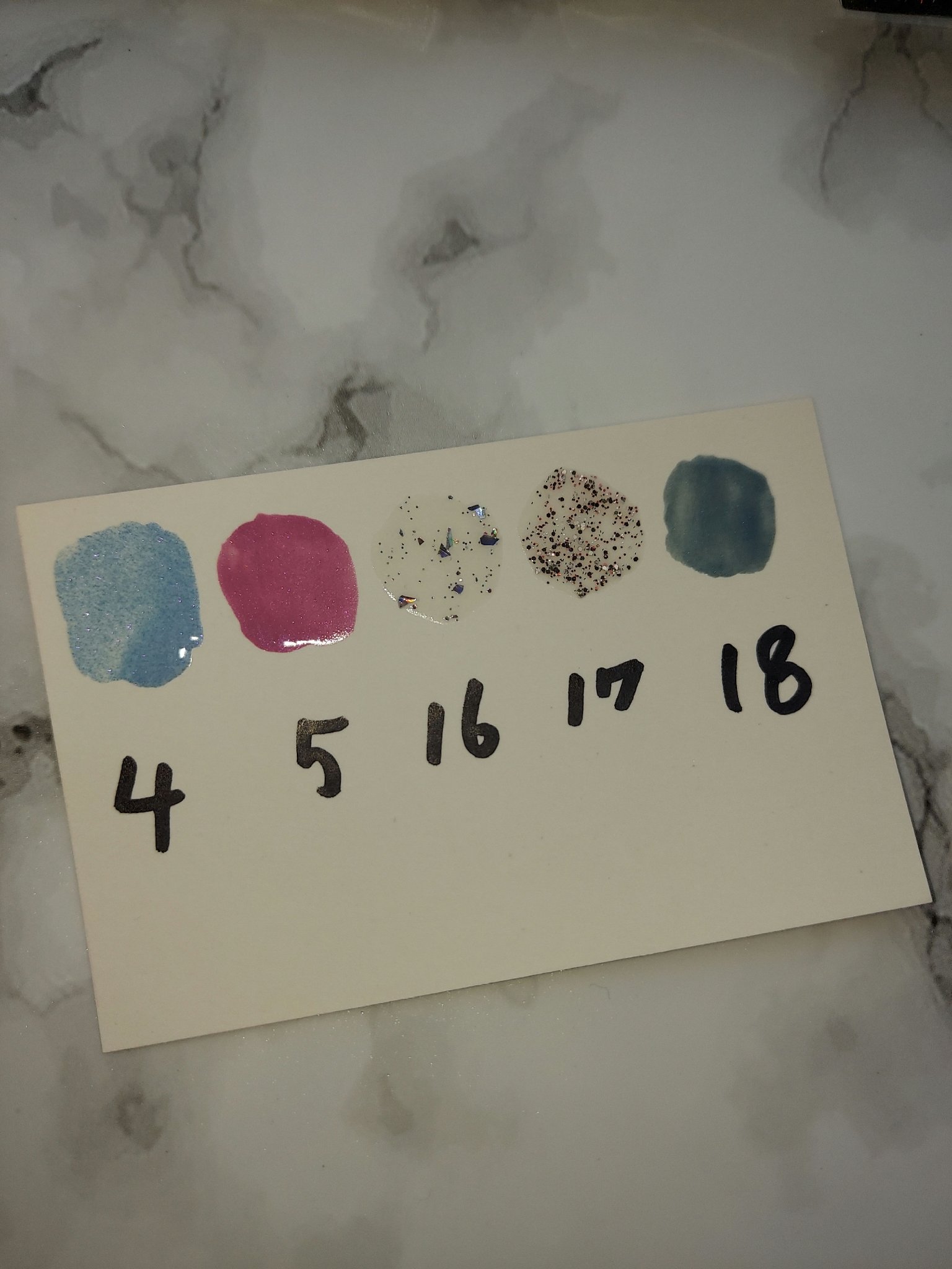 - <01 はじまりの笑顔> 酢酸ブチル、酢酸エチル、ニトロセルロース、(アジピン酸/ネオペンチルグリコール/無水トリメリト酸)コポリマー、クエン酸アセチルトリブチル、イソプロパノール、(スチレン/アクリレーツ)コポリマー、合成フルオロフロゴパイト、ステアラルコニウムベントナイト、シリカ、酸化チタン、ブタノール、酸化鉄、ジアセトンアルコール、クエン酸トリブチル、リン酸、酸化スズ、黄4 <02 はじらいコーラル> 酢酸ブチル、酢酸エチル、ニトロセルロース、(アジピン酸/ネオペンチルグリコール/無水トリメリト酸)コポリマー、クエン酸アセチルトリブチル、イソプロパノール、合成フルオロフロゴパイト、(スチレン/アクリレーツ)コポリマー、酸化チタン、ステアラルコニウムベントナイト、ブタノール、ジアセトンアルコール、シリカ、黄4、クエン酸トリブチル、赤202、赤226、リン酸、酸化スズ <03 ベイビーミント> 酢酸ブチル、酢酸エチル、ニトロセルロース、(アジピン酸/ネオペンチルグリコール/無水トリメリト酸)コポリマー、クエン酸アセチルトリブチル、イソプロパノール、酸化チタン、(スチレン/アクリレーツ)コポリマー、ステアラルコニウムベントナイト、合成フルオロフロゴパイト、ブタノール、ジアセトンアルコール、シリカ、クエン酸トリブチル、コンジョウ、酸化鉄、黄4、リン酸、酸化スズ <04 あの日の空> 酢酸ブチル、酢酸エチル、ニトロセルロース、(アジピン酸/ネオペンチルグリコール/無水トリメリト酸)コポリマー、クエン酸アセチルトリブチル、イソプロパノール、(スチレン/アクリレーツ)コポリマー、合成フルオロフロゴパイト、酸化チタン、ステアラルコニウムベントナイト、シリカ、ブタノール、ジアセトンアルコール、コンジョウ、クエン酸トリブチル、リン酸、黄4 <05 恋人つなぎ> 酢酸ブチル、酢酸エチル、ニトロセルロース、(アジピン酸/ネオペンチルグリコール/無水トリメリト酸)コポリマー、クエン酸アセチルトリブチル、イソプロパノール、酸化チタン、(スチレン/アクリレーツ)コポリマー、合成フルオロフロゴパイト、ステアラルコニウムベントナイト、マイカ、ブタノール、赤202、シリカ、ジアセトンアルコール、クエン酸トリブチル、赤226、リン酸、カーボンブラック、酸化スズ、黄4 <06 15時の誘惑> 酢酸エチル、酢酸ブチル、ニトロセルロース、クエン酸アセチルトリブチル、(アジピン酸/ネオペンチルグリコール/無水トリメリト酸)コポリマー、イソプロパノール、PET、シリカ、酸化チタン、硫酸Ba、水、ブタノール、オキシベンゾン-1、ポリウレタン-11、酸化鉄、黄4、カーボンブラック、コンジョウ、ステアラルコニウムベントナイト、ジアセトンアルコール、紫201 <07 君に夢中> 酢酸ブチル、酢酸エチル、ニトロセルロース、クエン酸アセチルトリブチル、イソプロパノール、(アジピン酸/ネオペンチルグリコール/無水トリメリト酸)コポリマー、PET、シリカ、ポリブチレンテレフタレート、ブタノール、合成フルオロフロゴパイト、アクリレーツコポリマー、(エチレン/VA)コポリマー、酸化チタン、ポリウレタン-11、マイカ、赤202、酸化スズ、コンジョウ、Al、黄4 <08 水しぶき> 酢酸ブチル、酢酸エチル、ニトロセルロース、クエン酸アセチルトリブチル、イソプロパノール、(アジピン酸/ネオペンチルグリコール/無水トリメリト酸)コポリマー、シリカ、PET、ポリブチレンテレフタレート、ブタノール、合成フルオロフロゴパイト、アクリレーツコポリマー、酸化チタン、(エチレン/VA)コポリマー、ポリウレタン-11、酸化スズ、コンジョウ、酸化鉄、黄4、Al <09 キウイモヒート> 酢酸エチル、酢酸ブチル、ニトロセルロース、(アジピン酸/ネオペンチルグリコール/無水トリメリト酸)コポリマー、クエン酸アセチルトリブチル、イソプロパノール、スイートアカシアガム、レーヨン、合成フルオロフロゴパイト、シリカ、グリセリン、酸化チタン、エトクリレン、ブタノール、尿素、水、(スチレン/アクリレーツ)コポリマー、カリトリスクアドリバルビスガム、青1、黄4、マイカ、ポリウレタン-35、酸化スズ、カルナウバロウ、ソルビン酸K、紫201 <10 ダークチェリー> 酢酸ブチル、酢酸エチル、ニトロセルロース、(アジピン酸/ネオペンチルグリコール/無水トリメリト酸)コポリマー、クエン酸アセチルトリブチル、イソプロパノール、(スチレン/アクリレーツ)コポリマー、ステアラルコニウムベントナイト、ブタノール、エトクリレン、ジアセトンアルコール、シリカ、酸化チタン、クエン酸トリブチル、酸化鉄、赤226、赤220、リン酸、カーボンブラック、黄4 <11 ストロベリーミルク> 酢酸ブチル、酢酸エチル、ニトロセルロース、(アジピン酸/ネオペンチルグリコール/無水トリメリト酸)コポリマー、クエン酸アセチルトリブチル、イソプロパノール、(スチレン/アクリレーツ)コポリマー、ステアラルコニウムベントナイト、ブタノール、エトクリレン、ジアセトンア