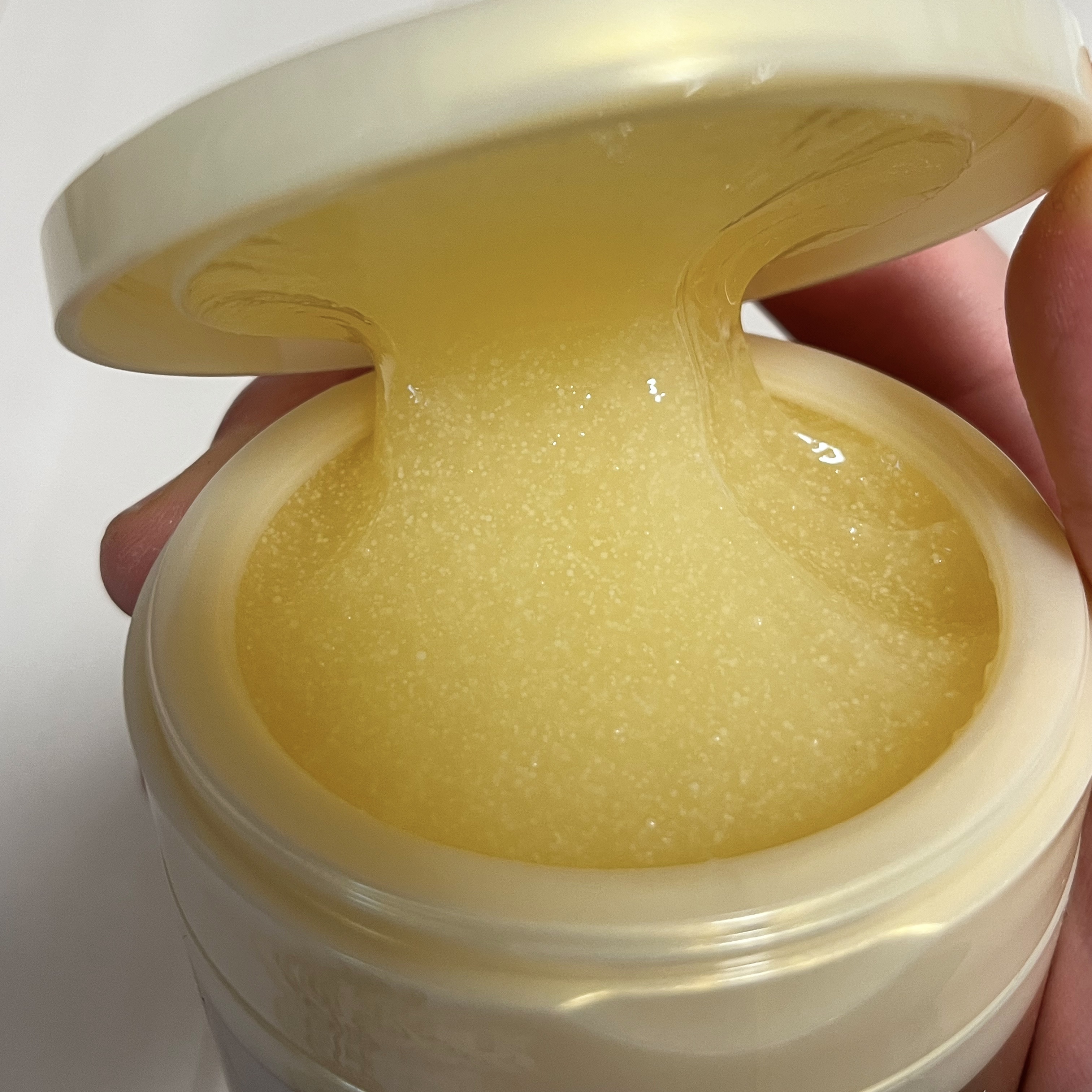 | 透明なジェルに黄色い粒がたっぷり。オイルカプセルによるリッチなコクうるがクセになる。 | 詳細を見る | ||