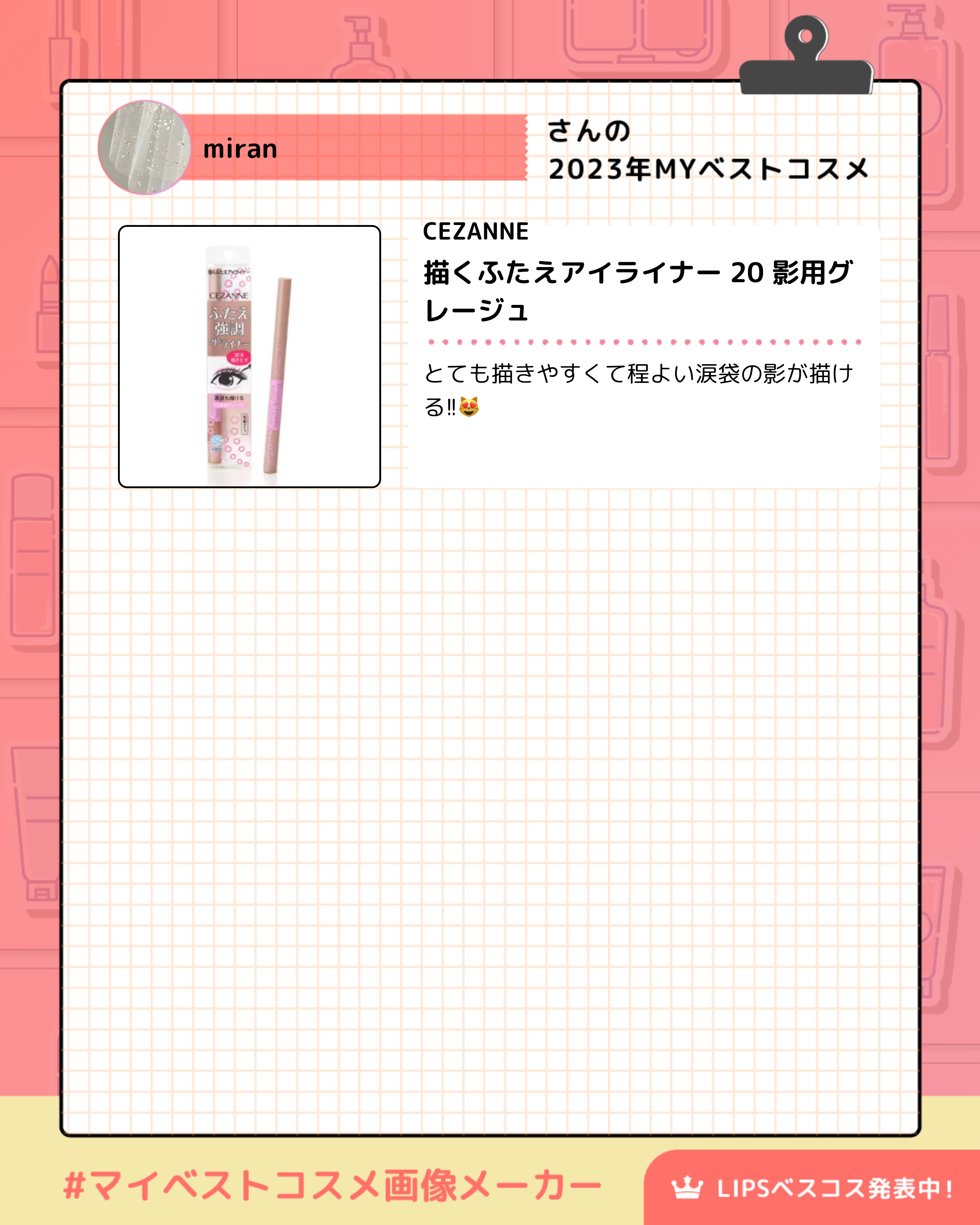 - LIPSベストコスメ2025 リキッドアイライナー部門1位LIPSベストコスメ2024 リキッドアイライナー部門3位LIPSベストコスメ2023 リキッドアイライナー部門3位LIPSベストコスメ2022 リキッドアイライナー部門3位LIPSベストコスメ2021年間 アイライナー 第1位