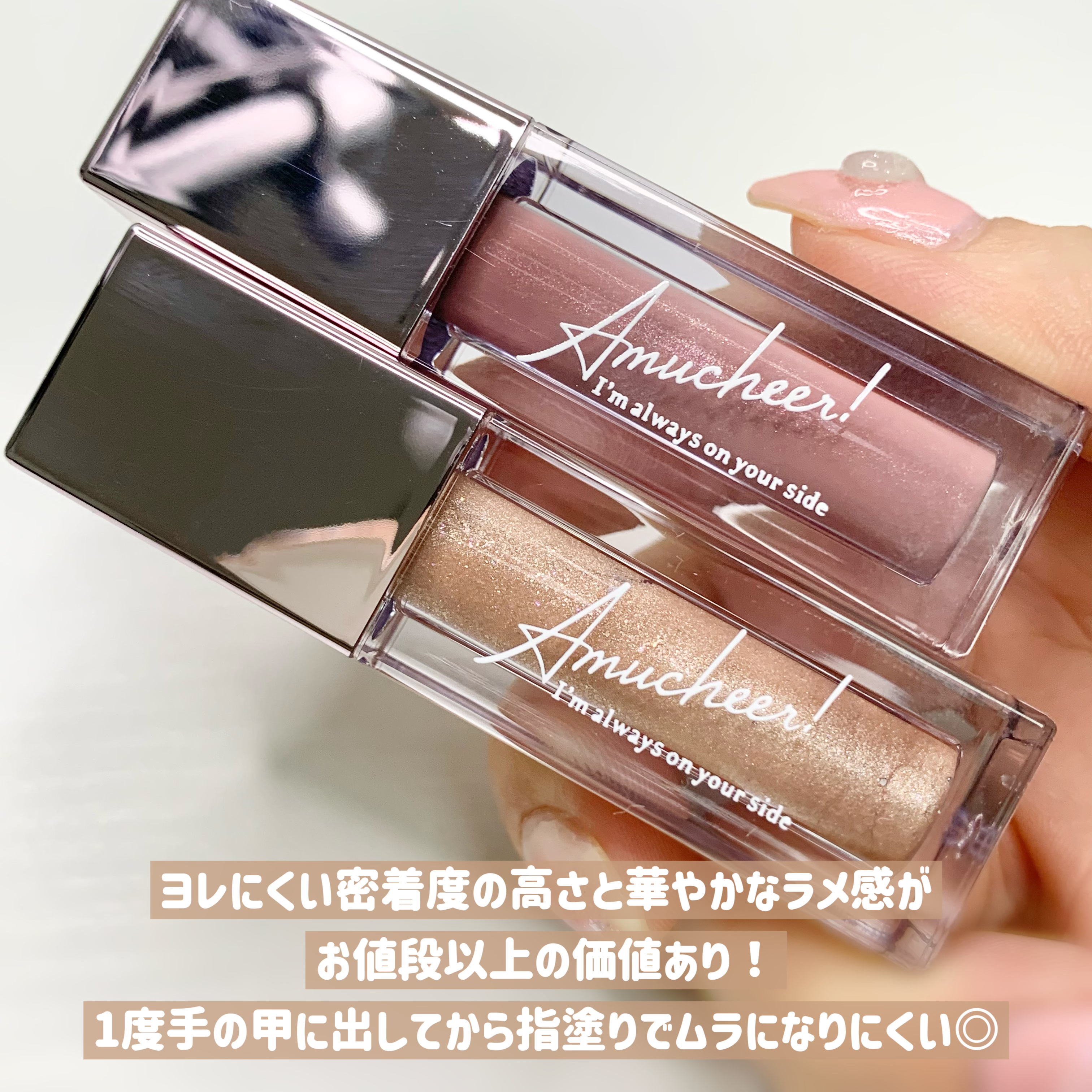 - 高発色×高密着×ラメ感持続のリキッドアイシャドウ。 セミマット・パール・グリッターの3タイプで異なる質感を楽しめます。 密着性の高い柔らかなジェルとサラサラのコートが肌にフィットし、まばたきしてもヨレにくい目元を叶えます。