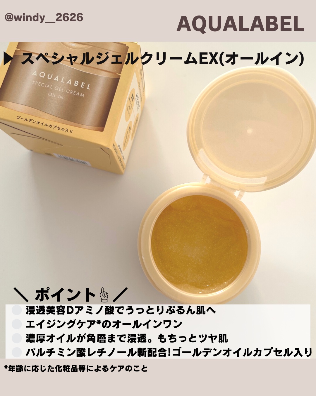 #使い切りコスメ🌼アクアレーベル スペシャルジェルクリームEX オイルイン濃厚オイルがキメの奥までじゅわっと浸透もちっとハリつや溢れる肌へエイジングケアのためのオールインワンゴールデンオイルカプセル配合化粧水乳液クリーム美容液マスク5つがこれ...