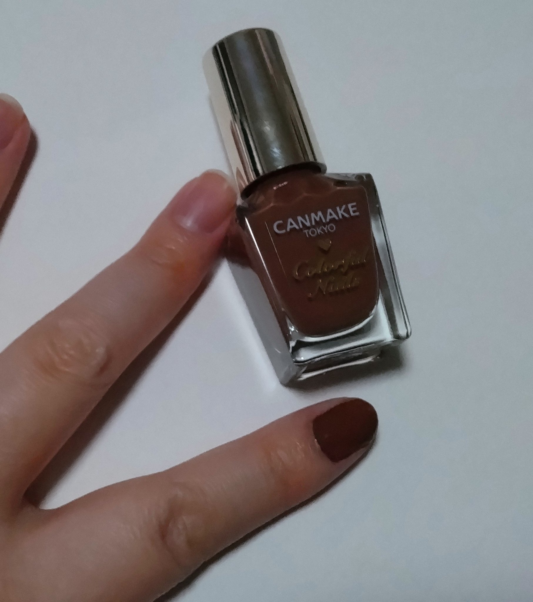 リップはティントではないですが、凄くうっすら色残りはするなと思いました! アイシャドウは1枚目はすっぴん、2枚目はシルキースフレアイズ03、3枚目はシルキースフレアイズ08となります! アイブロウマスカラはアイメイクの画像のどちらにも使っていますが、若干茶色味のある黒髪の私でもそこまで浮かずに使えました。 カラフルネイルズは1度塗りで高発色!チョコレートカラーになれて、塗りやすいのも良かったです!!