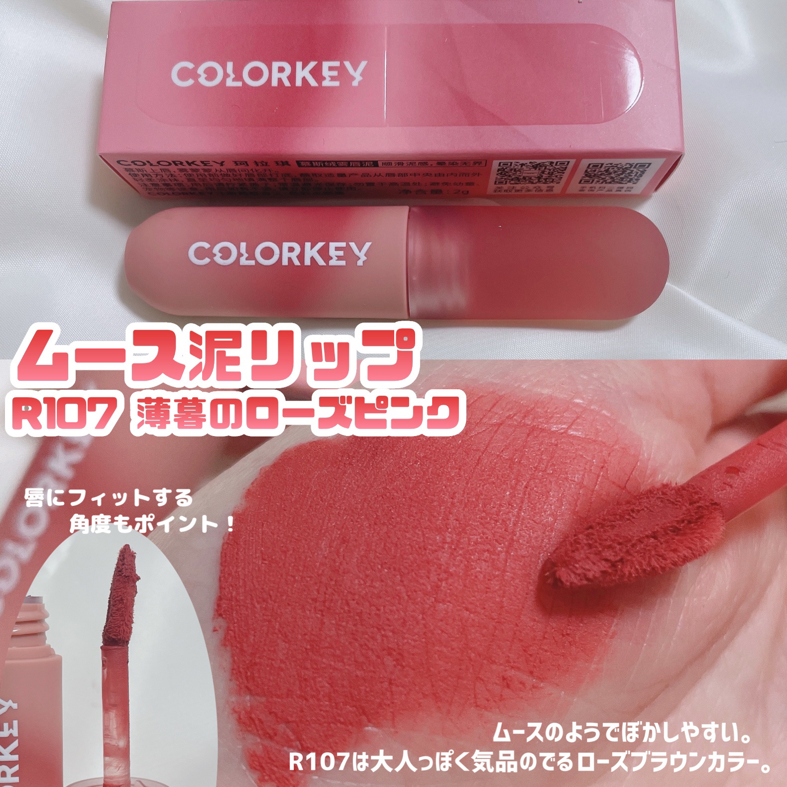 【ブランド】COLORKEY【モデル】CKムースMリップ【カラー】R109【質感】マット【色味】ローズレッド中国ブランドのティントがよく出す「泥リップ」(おそらくリップカラーの製品のあるどの国も作ってますが、なぜか中国ではやりのイメージがあり...