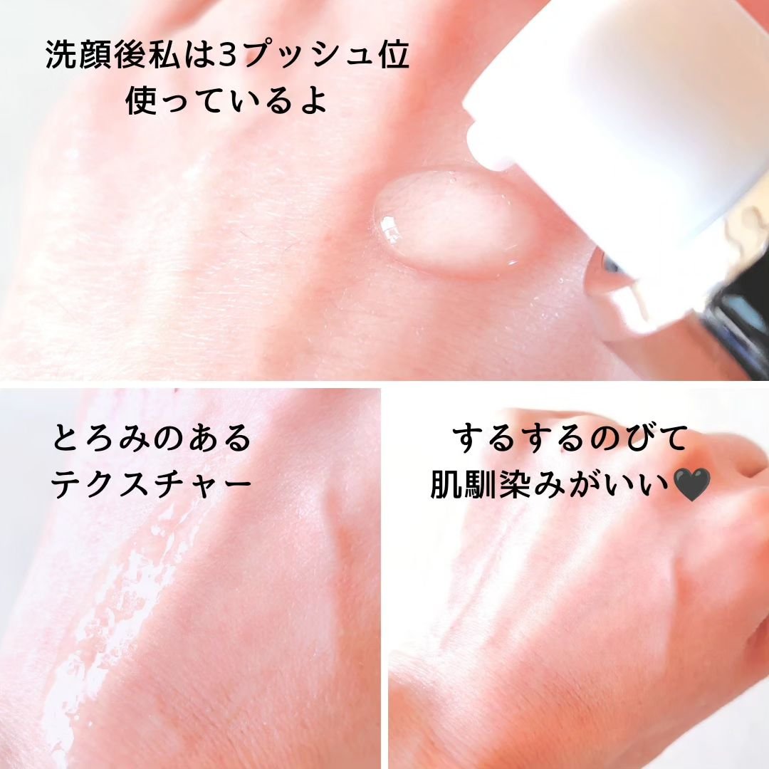 テクスチャーはジェルクリームでぷるんぷるん🫧見た目だけで水分チャージしてくれそうな感じがするこのジェルクリーム、塗ると伸びが良くて気持ち良い💙 みずみずしいぷるんぷるんのテクスチャーだから少量でも👌 乾燥が気になる時には重ね付けしてるよ!