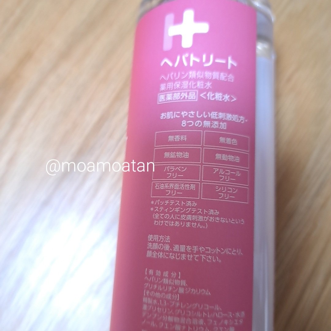 - ヘパトリートは保水有効成分のヘパリン類似物質と肌あれ有効成分のグリチルリチン酸ジカリウムを配合し、8つのフリーを実現。低刺激処方ながら高機能な化粧水です。さらに、薬用化粧水では珍しい大容量ポンプ(385mL)でとても使いやすく、赤ちゃんから大人まで、顔や全身の肌あれ・乾燥に使えます。 ■Wの有効成分 1.ヘパリン類似物質 顔・全身の乾燥を防ぐ 肌の乾燥による肌あれ/あれ性/皮膚を健やかに保つ/肌を整える/あせも/ひび/あかぎれ 2.グリチルリチン酸ジカリウム ニキビを防ぐ/肌をひきしめる/日やけ、雪やけ後のほてりを防ぐ/しもやけ/かみそりまけを防ぐ ■肌にやさしい低刺激処方<8つのフリー> 無香料/無着色/無鉱物油/無動物油/パラベンフリー/アルコールフリー/石油系界面活性剤フリー/シリコンフリー ※パッチテスト済み ※スティンギングテスト済み