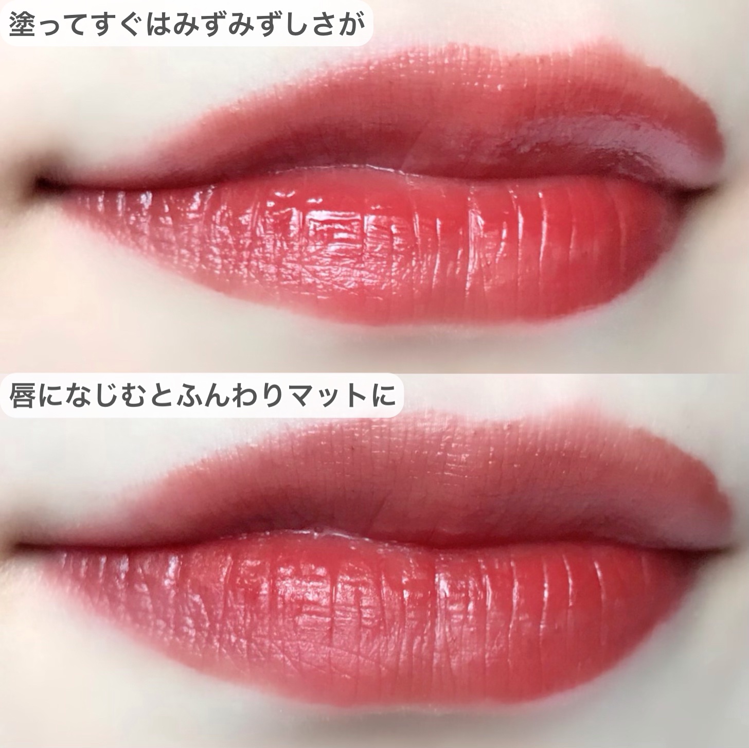 - 潤いのあるマットな唇が長時間続くティントルージュ。 みずみずしい塗り心地で、唇になじむとマットに変化!潤いのある軽やかなマットな唇が持続します。 ティントタイプなので色も長時間持続します。